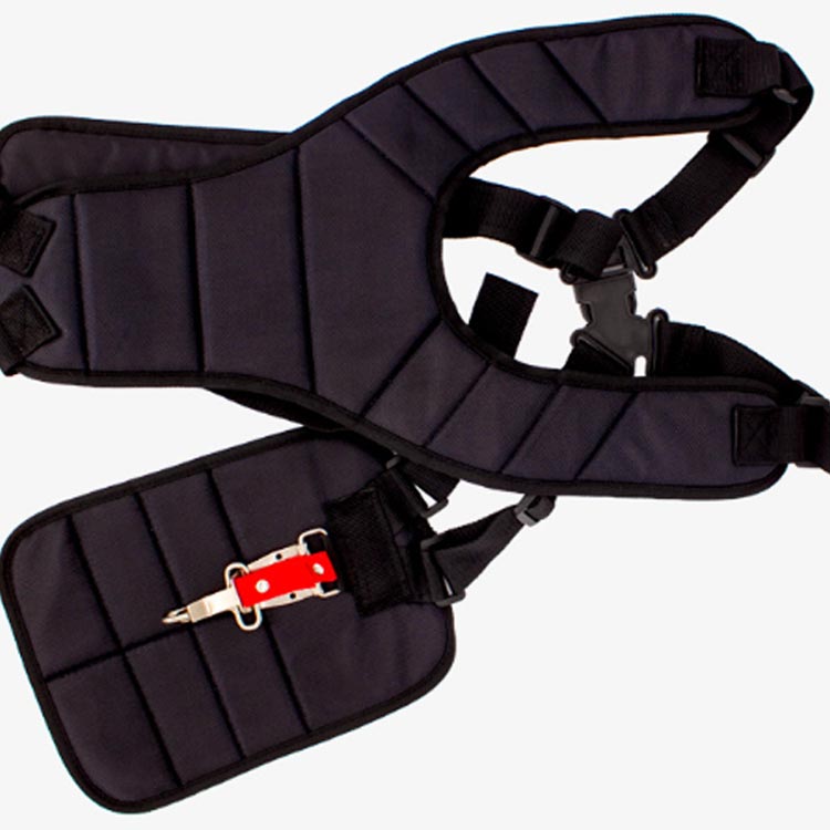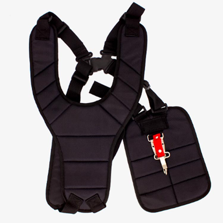 草刈り機や刈払機の重さを分散、身体への負担を軽減する、両肩タイプの草刈機バンドです。