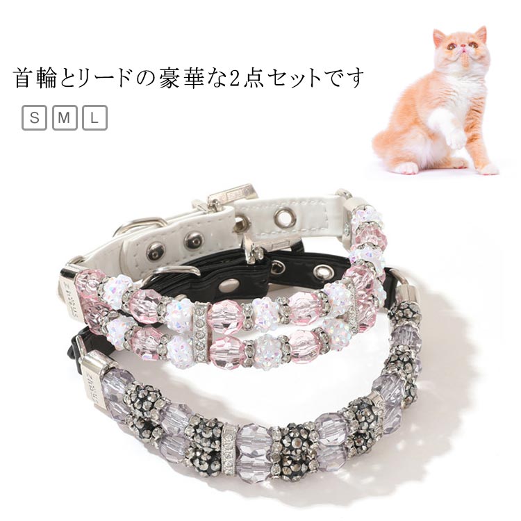 アクセサリー 犬 セレブ ビーズ 犬首 犬用品 首輪 胴輪 リード リード 早い者勝ち ブラック ピンク S(首輪+リード2点セット) M(首輪+リード2点セット) L(首輪+リード2点セット)