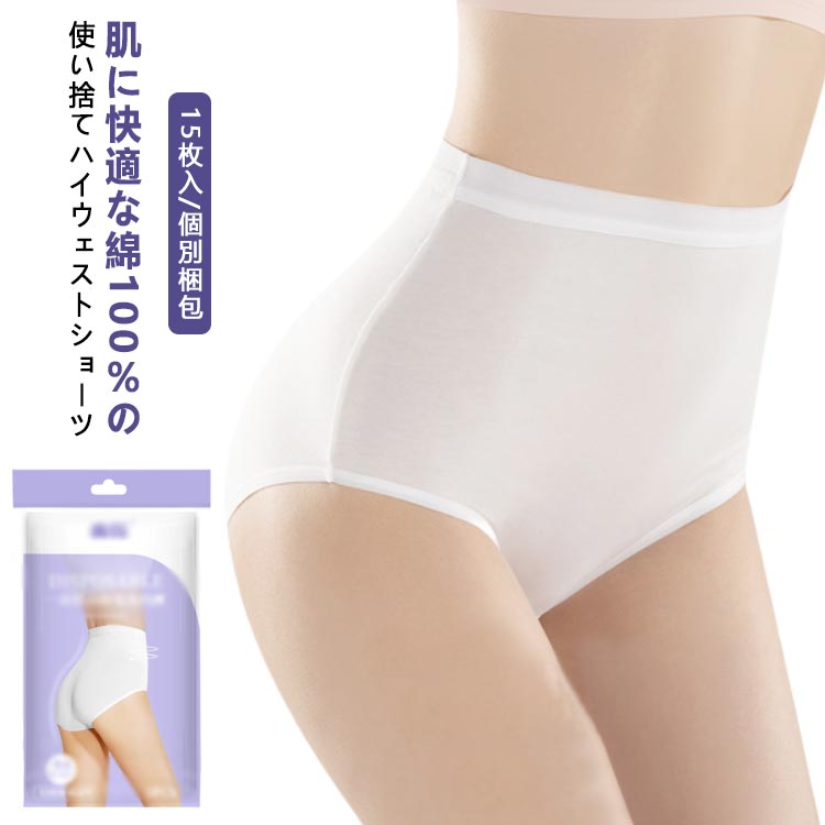 使い捨て ショーツ 15枚入 パンツ 個別包装 ハイウェスト コットン 生理 女性用 抗菌 衛生的 綿100% 下着 セット 入院 100 綿 妊娠 出産用 消耗品 女性用パンツ 旅行 介護