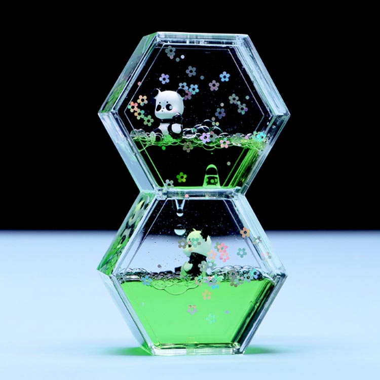 水族館 液体タイマー 回転 液体 タイマー 水時計 オイルモーション 砂時計 オイルタイマー 可愛い オイル砂時計 液体オイル オイル 油滴 立体感 お洒落 置物 子供 おもちゃ 集中 パンダ
