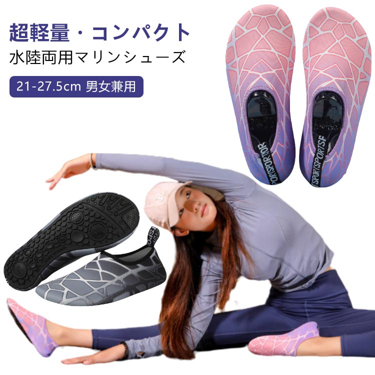 アクアシューズ 靴 レディース メンズ コンパクト 水陸両用 大きいサイズ マリンシューズ フィットネスシューズ お洒落 通性良い 岩場 軽量 保護 快適 ダイビング シュノーケリング 柄 排水機能