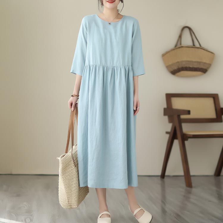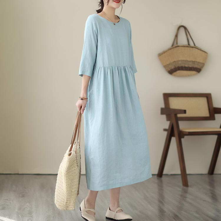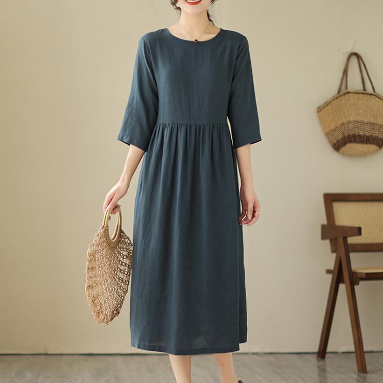 五分袖 マキシ丈 ワンピース 半袖 レディース ロングワンピース 綿麻混 5分袖 夏 体型カバー 大きいサイズ ポケット付き 大人 マキシワンピース ゆったり 40代 Aライン 50代 綿麻 30代