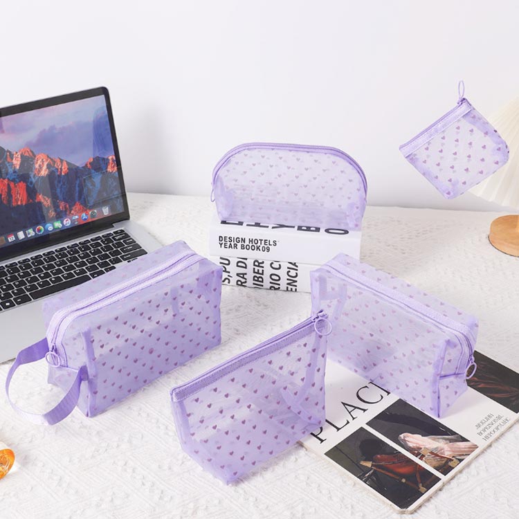 可愛いハート柄!軽いメッシュ素材化粧ポーチ