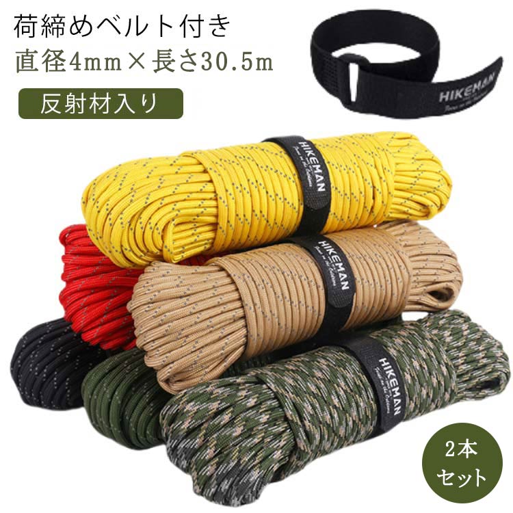 ロープ 多機能 30.5m 4mm 反 アウトドア テント タープ テントアクセサリー ガイロープ 豊富な品揃え ブラック レッド イエロー キャメル カーキグリーン 迷彩