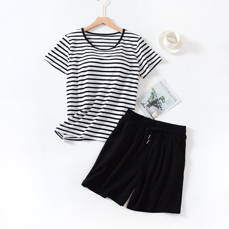 着痩せシルエットで肌触りも良い素材のTシャツと三分パンツの2点セット。