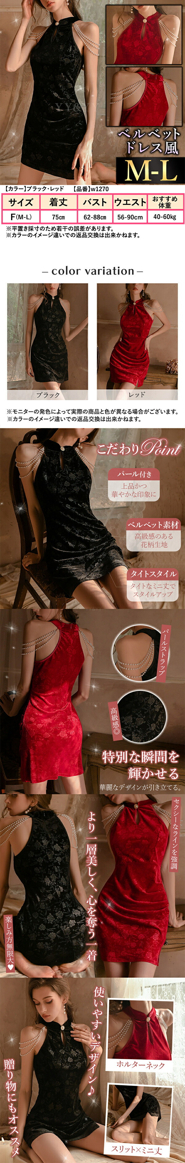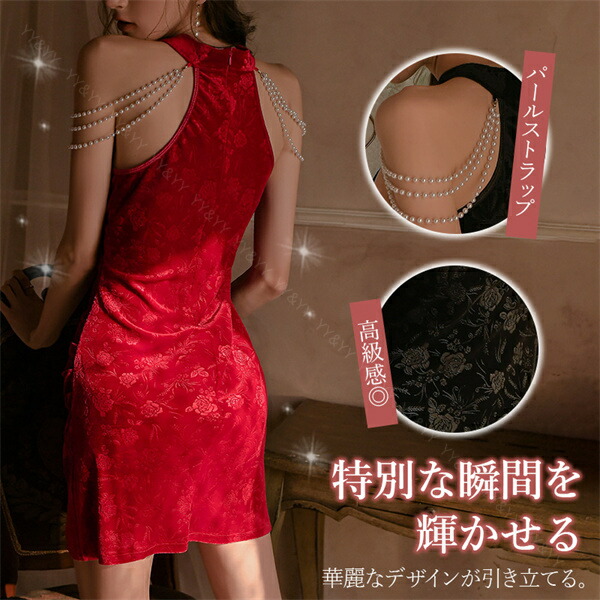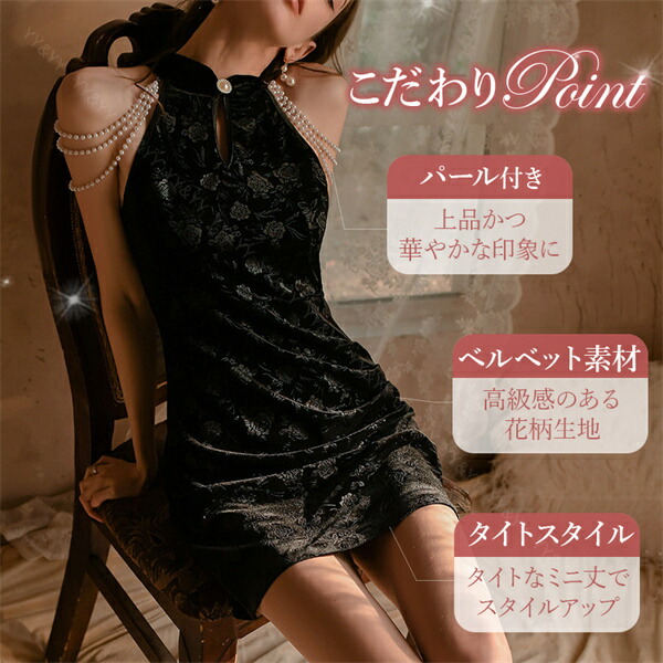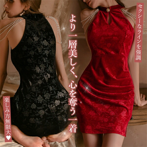 【宅配便】+【日付指定】が必須です。商品説明 エレガントでセクシーなチャイナ風ベビードールが登場!高級感のあるベルベット素材を使用し、美しい花柄デザインが女性らしさを引き立てます。パールストラップ付きでデコルテを華やかに彩る。ミニスカート丈が大人の魅力を引き立て、特別な夜やイベントでのコーディネートにぴったり。セクシーランジェリーとしてはもちろん、プレゼントやサプライズにもおすすめの一着です。自分らしくかわいく YY&YY◇当店ではセクシーランジェリーやコスプレ衣装を豊富に取り揃えています。