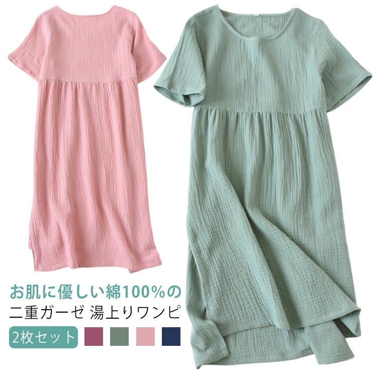 お肌に優しい綿100%の二重ガーゼ 湯上りワンピ 【2枚セット】