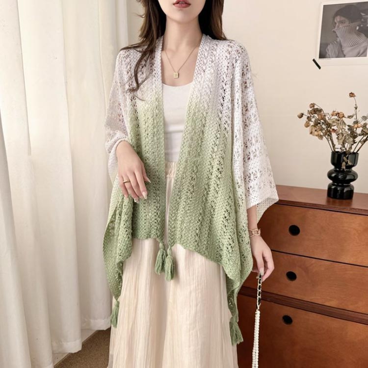 透かし編み 大判 大人 サマーカーディガン アウター サマーニット 夏 透かし彫り ニット グラデーション ノースリーブ 薄手 紫外線対策 レディース ショール トップス ゆったり カーディガン 羽織
