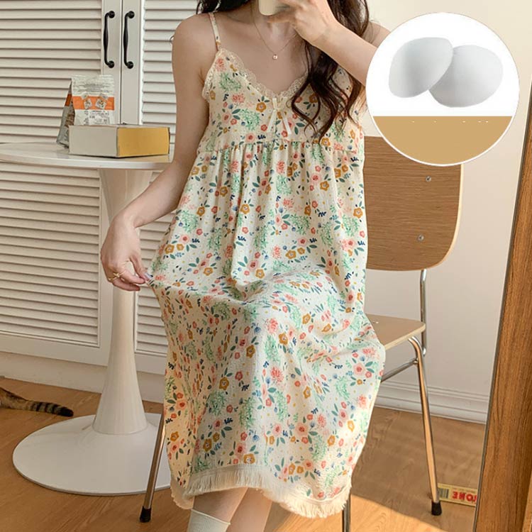 カップ付き レディース 部屋着 フリンジ パジャマ キャミワンピース 可愛い ロング カジュアル レース 涼しい ルームウェア 寝間着 ノースリーブ インナー ワンピース リラックス ルームワンピース