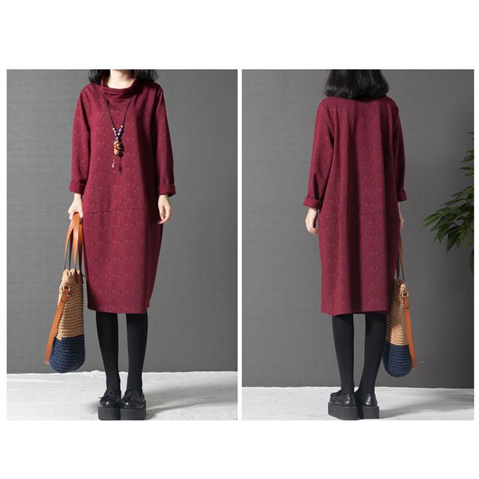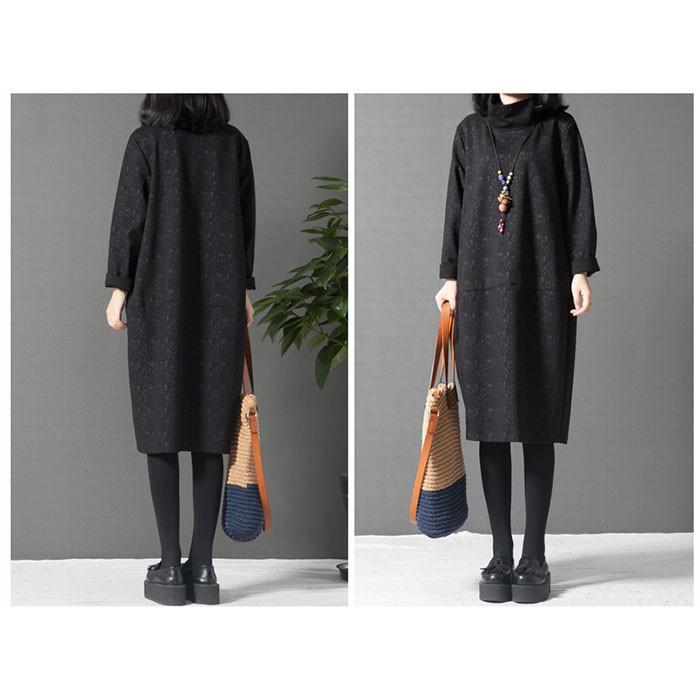 キーワード:ワンピース レディース 秋 膝丈 マキシ ロング丈 ロング 花柄 ロングワンピース 長袖 ひざ丈ワンピ 厚手 ひざたけ ハイネック トータルネック ゆったり 体型カバー 40代 50代