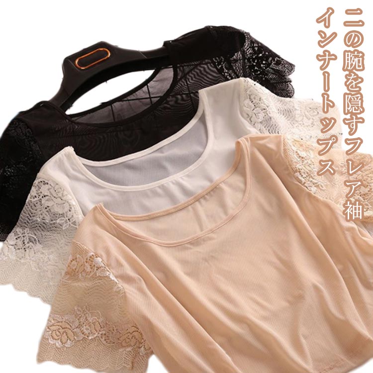 フリル袖 透け感 半袖 インナー 付け トップス その他 続々登場 ホワイト ブラック ベージュ S M L XL 2XL 3XL