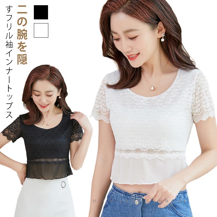 インナー トップス フリル袖 付け袖 レディースファッション 新登場! ブラック ホワイト