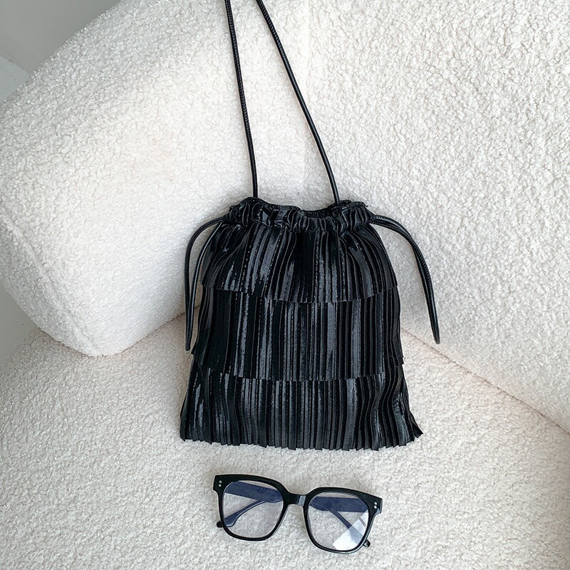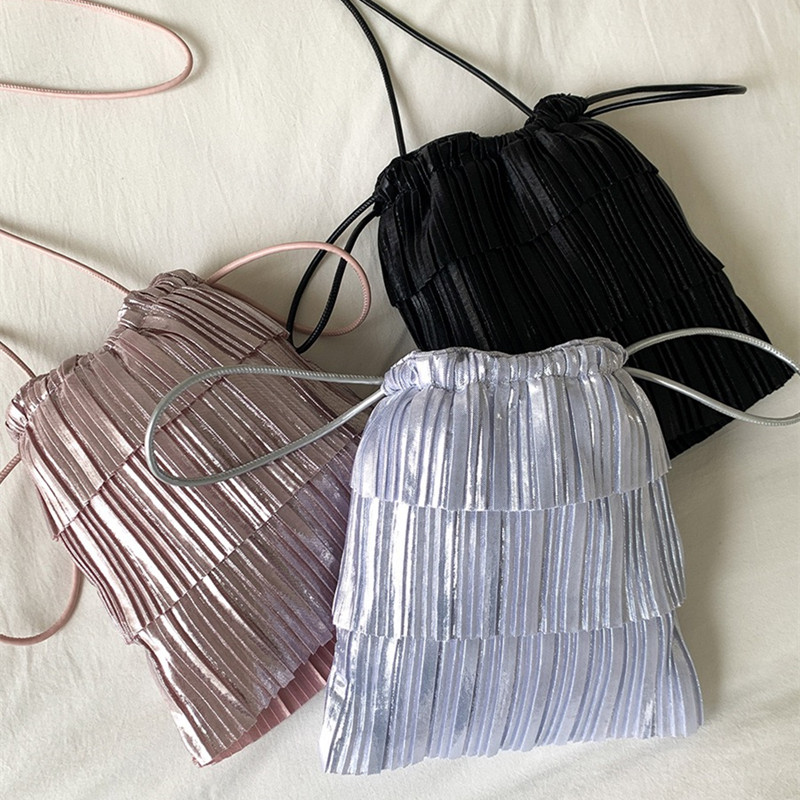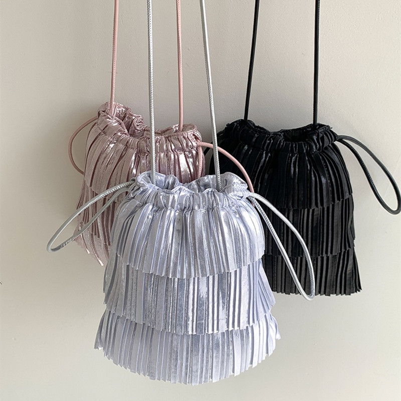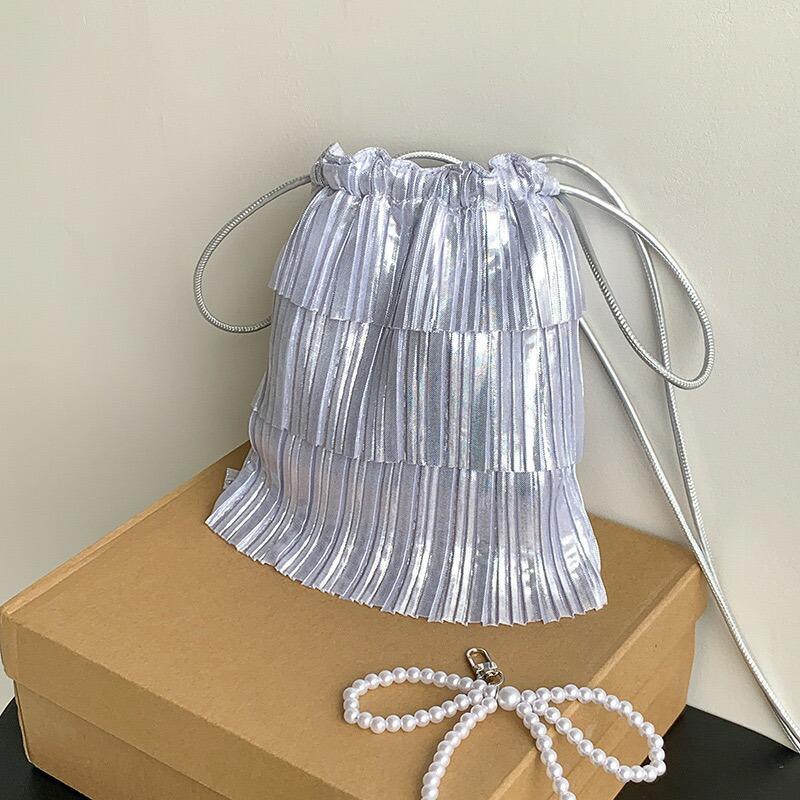 フリンジショルダーバッグ 巾着 レデイ バッグ 小物 ブランド雑貨 続々登場 ブラック シルバー ピンク