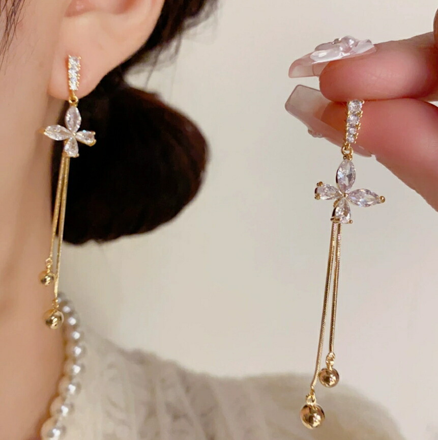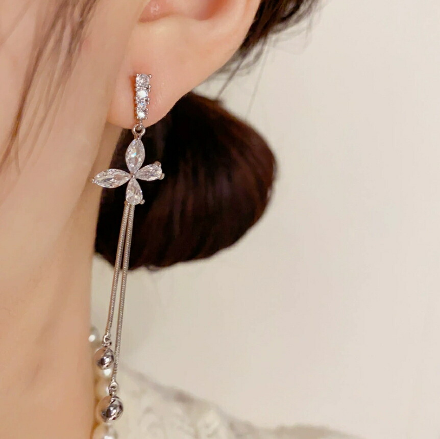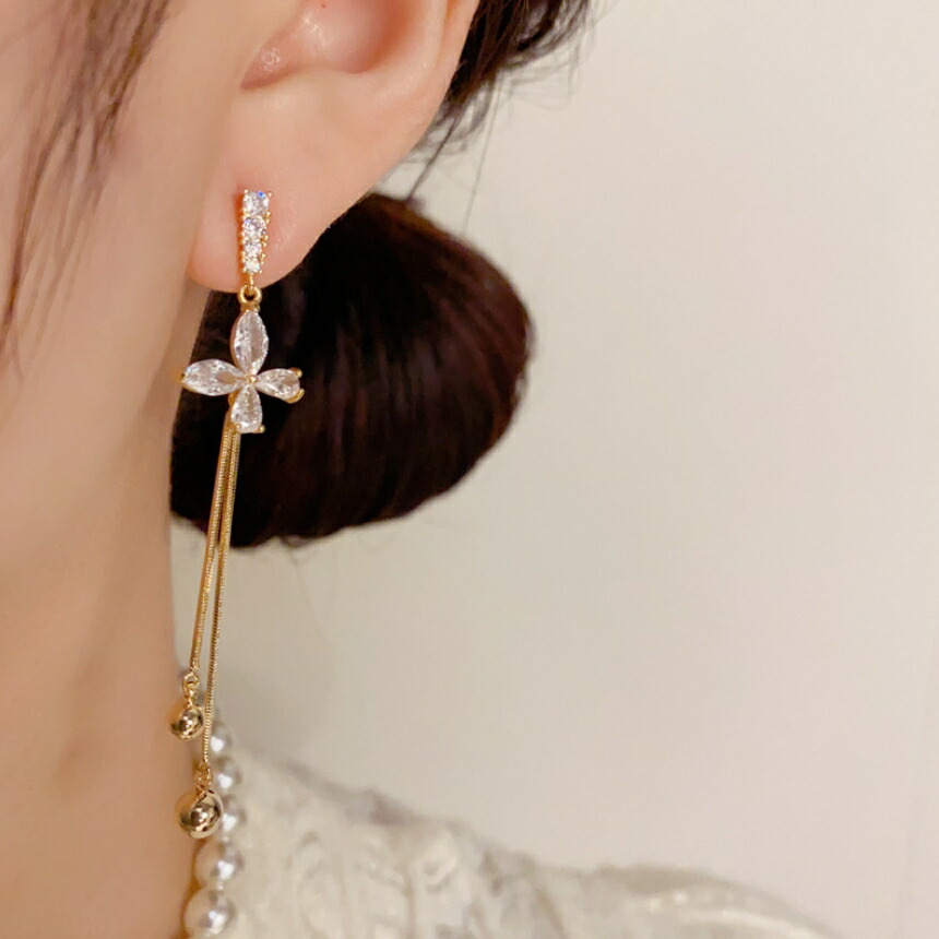 ロングチェーンピアス ビジュー キラキ レディースジュエリー アクセサリー ピアス 豊富な品揃え ゴールド シルバー