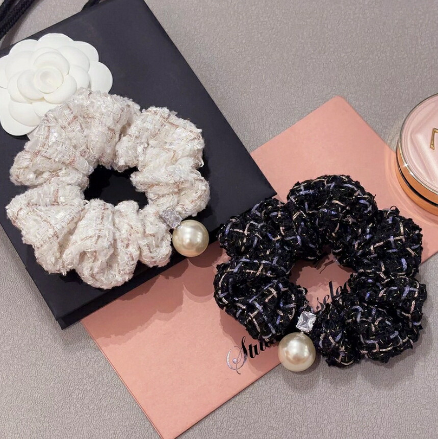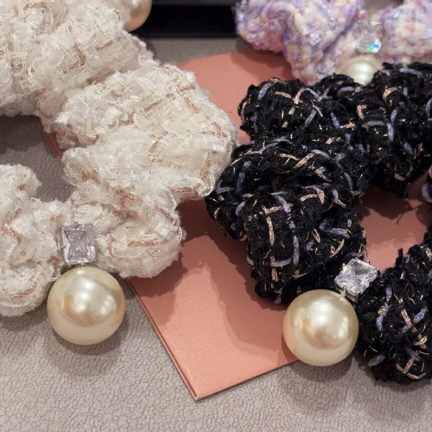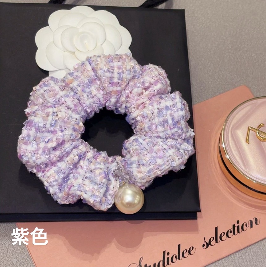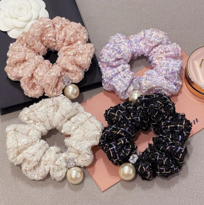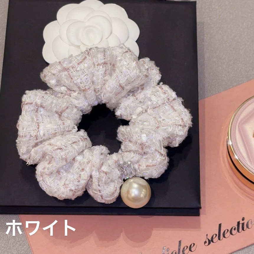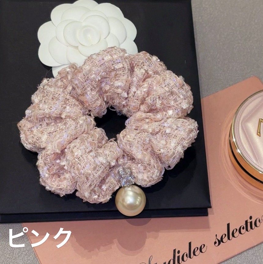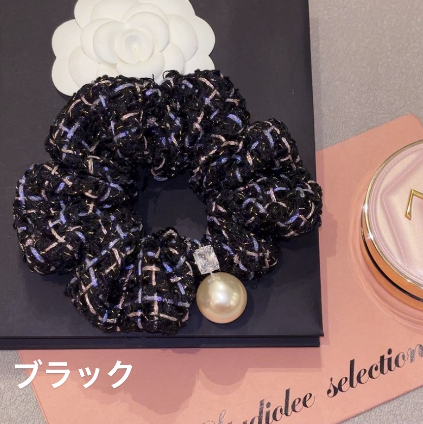 ラメツイードチェックシュシュ パールシ ジュエリー アクセサリー 早い者勝ち ピンク ブラック 紫色 ホワイト