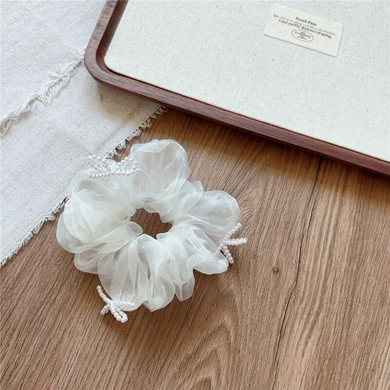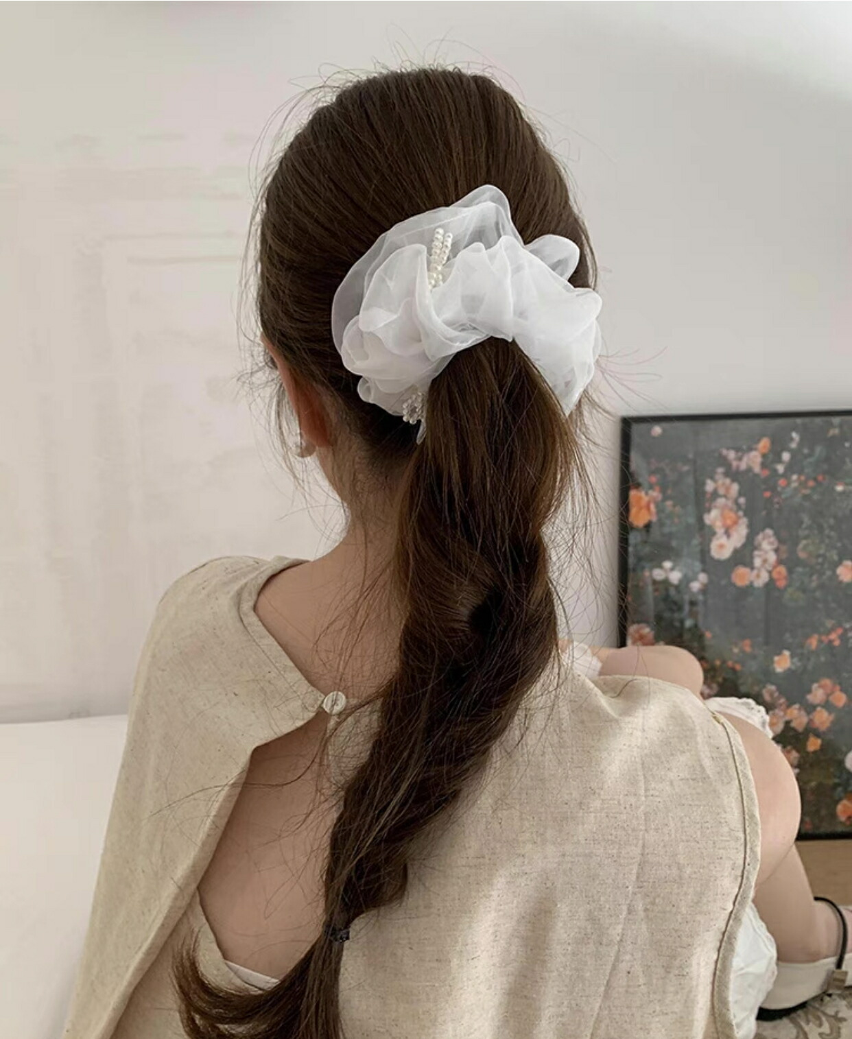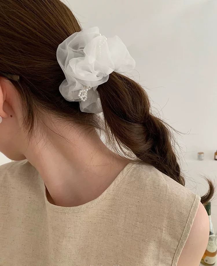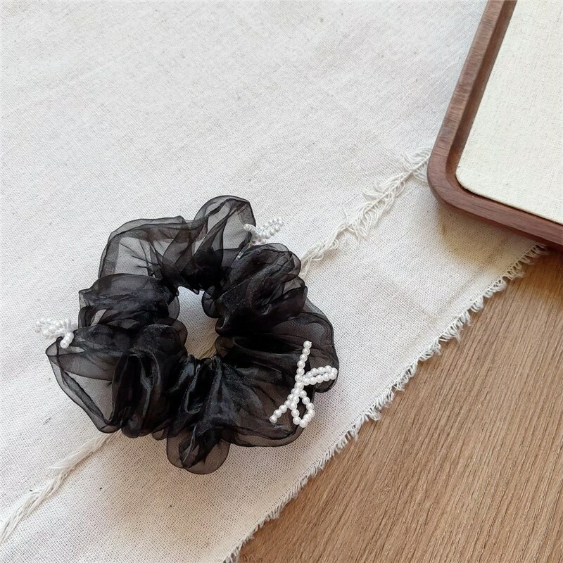 リボンモチーフシュシュ オーガンジーシ レディースジュエリー アクセサリー ヘアアクセサリー シュシュ 豊富な品揃え ホワイト ブラック