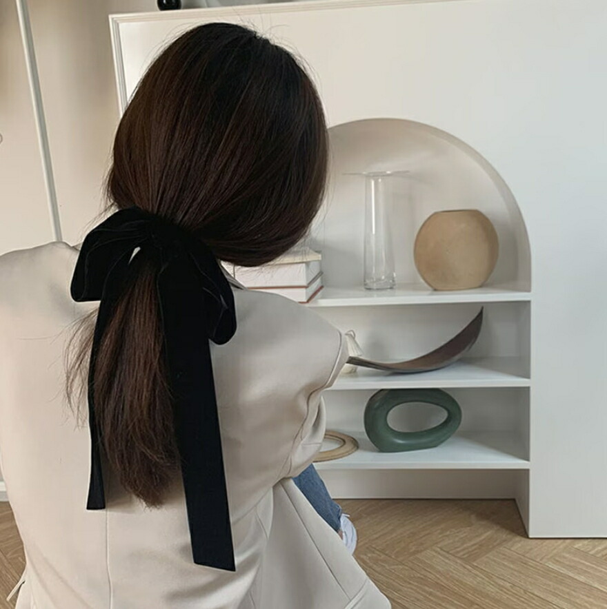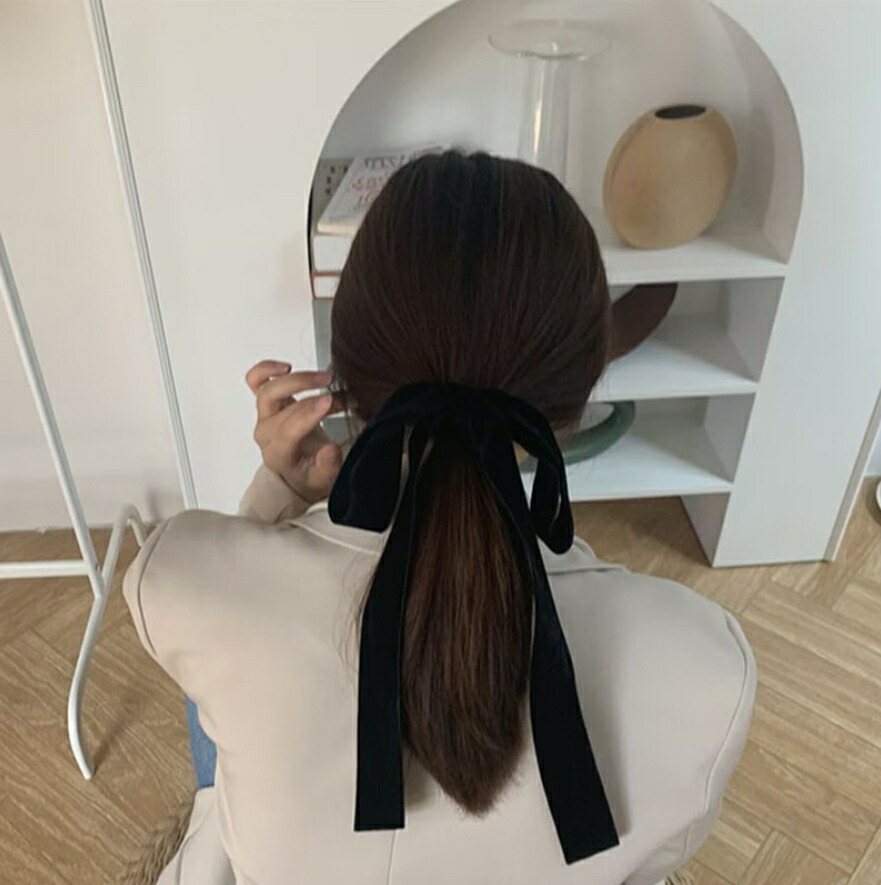 ベルベットロングリボンヘアゴム リボン ジュエリー アクセサリー 新登場!
