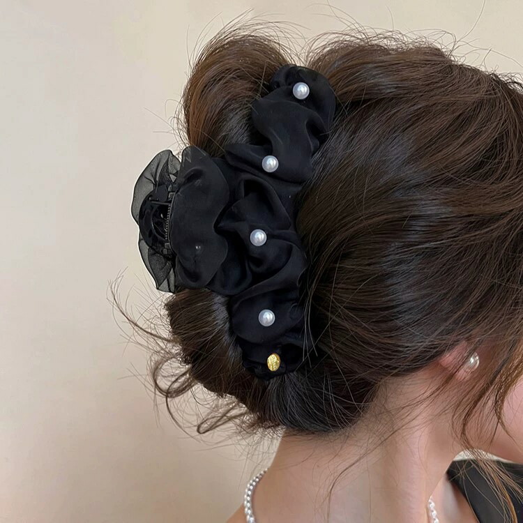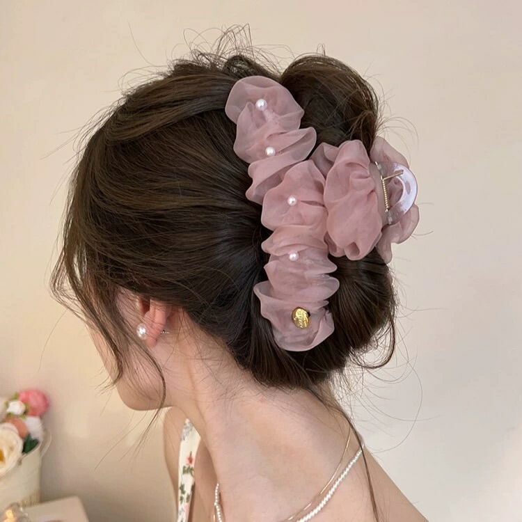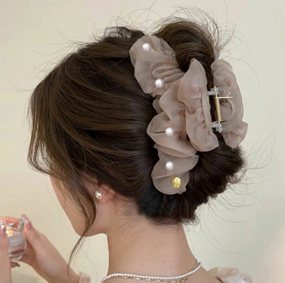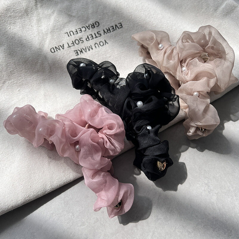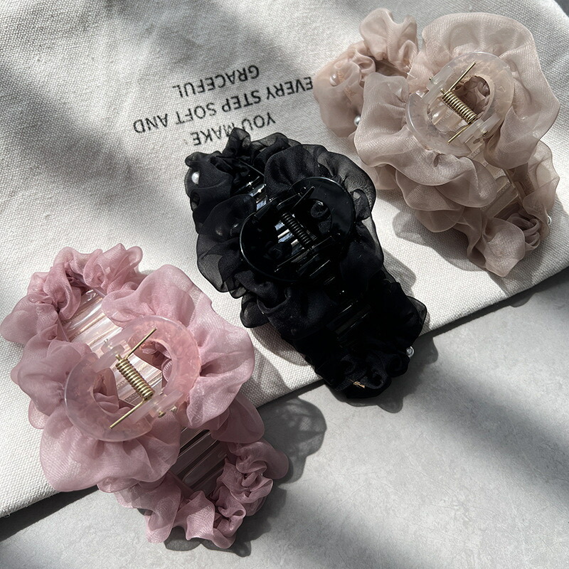 オーガンジーパールバレッタ バンスクリ レディースジュエリー アクセサリー ヘアアクセサリー バレッタ 豊富 ベージュ ピンク ブラック