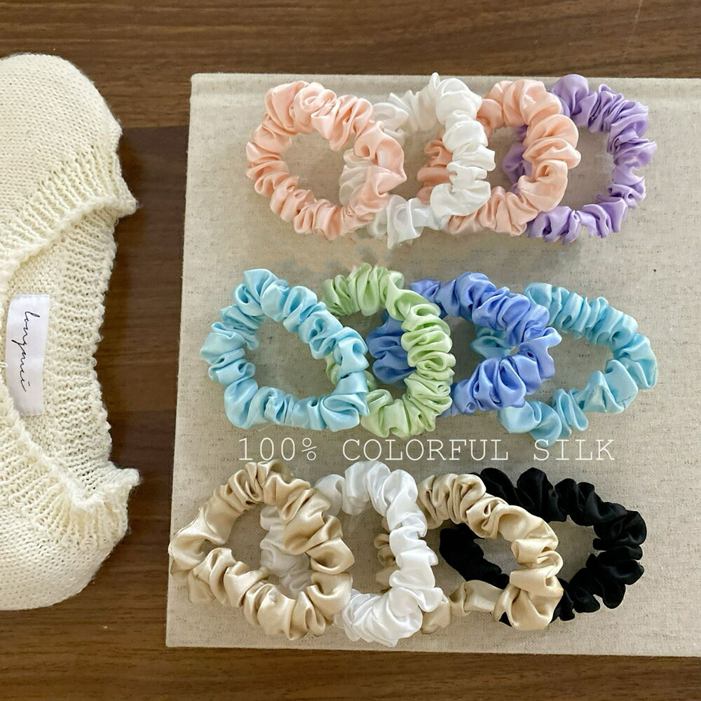 シルクシュシュ スリムシュシュ ヘアゴ ジュエリー アクセサリー 豊富 紫色 ピンク シャンパン色 ブラック ホワイト グリーン ライトブルー ブルー