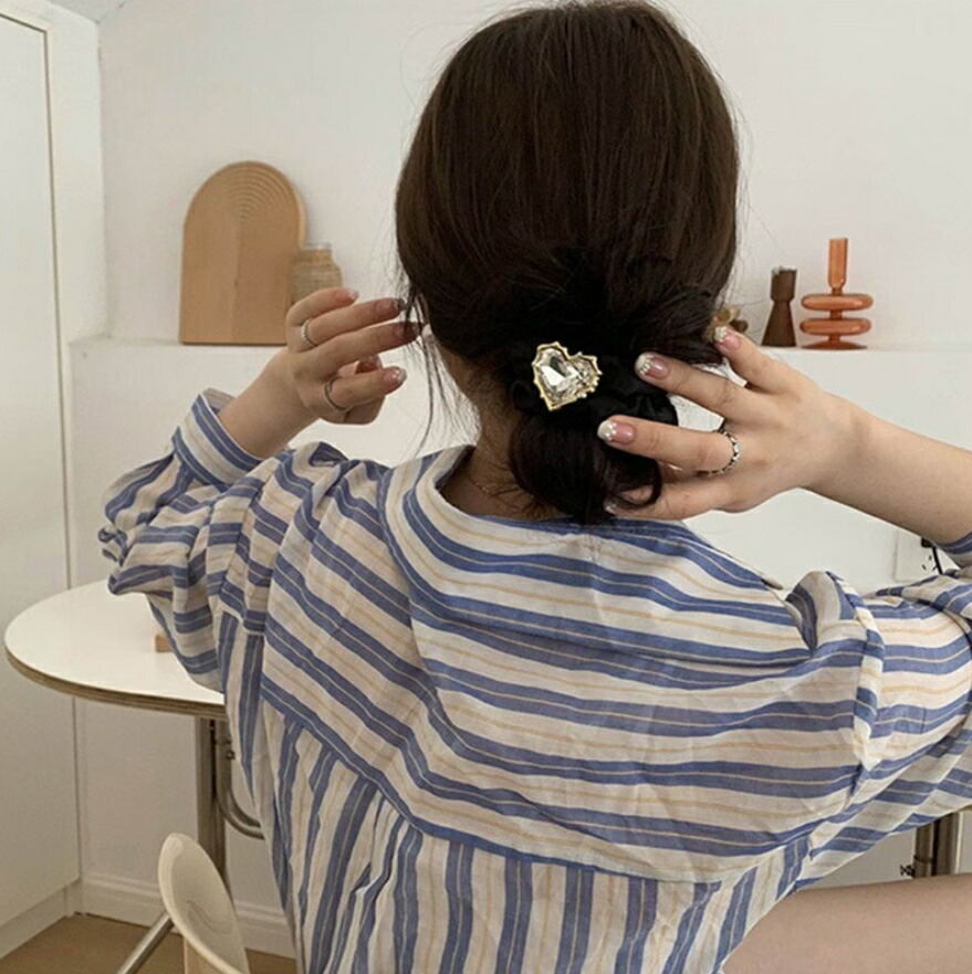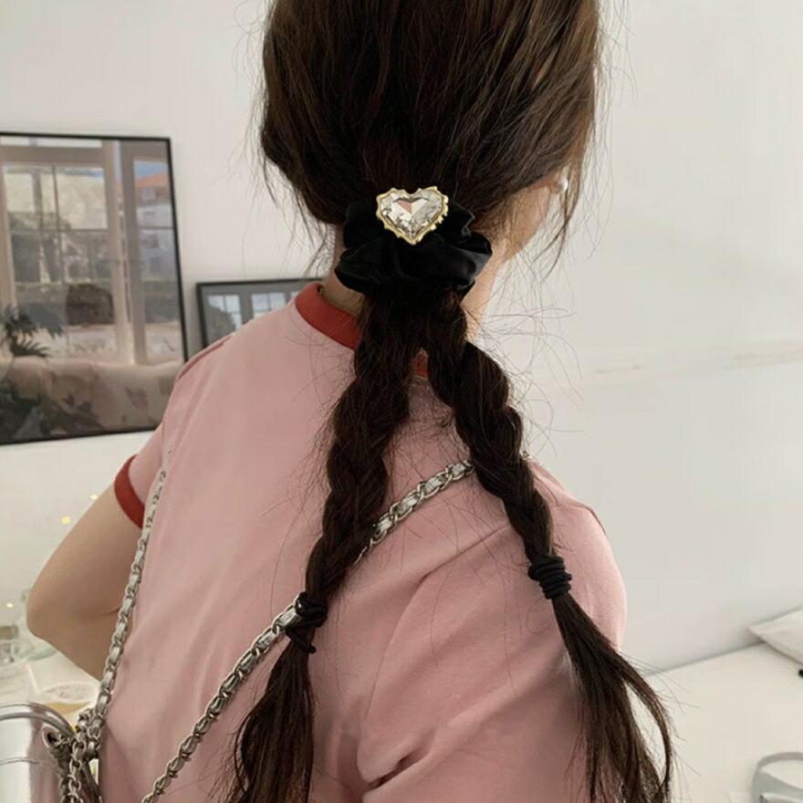 ビジューシュシュ ハート ヘアゴム シュシュ キラキラ ラインストーン シンプル おしゃれ 大人可愛い レディースアクセサリー
