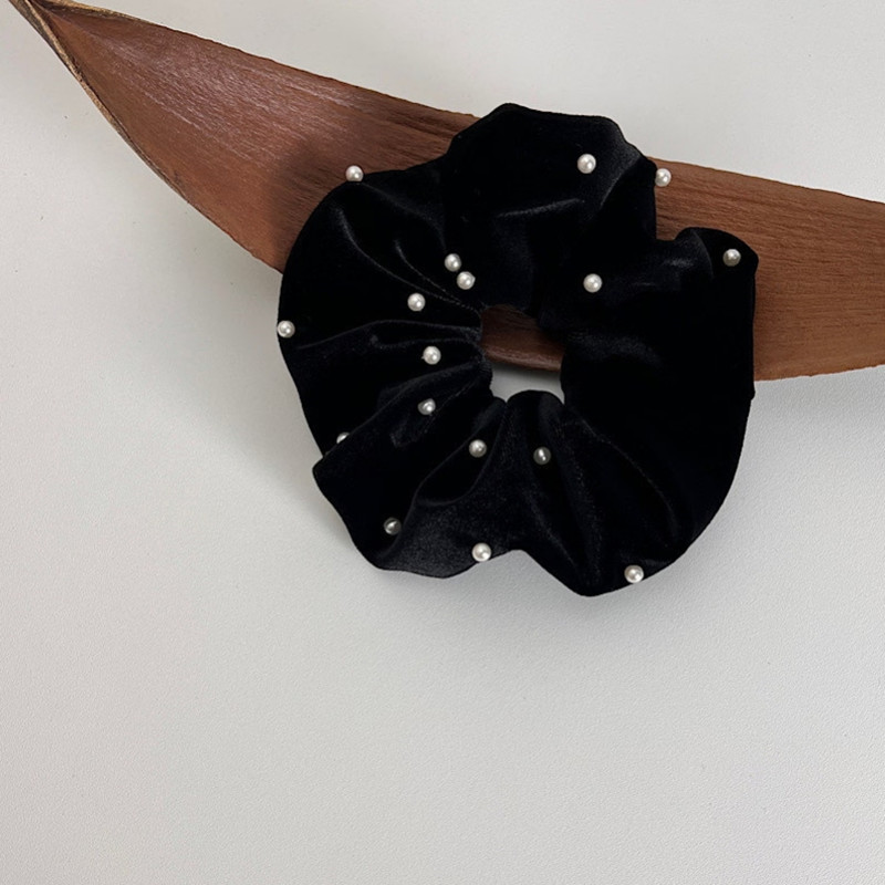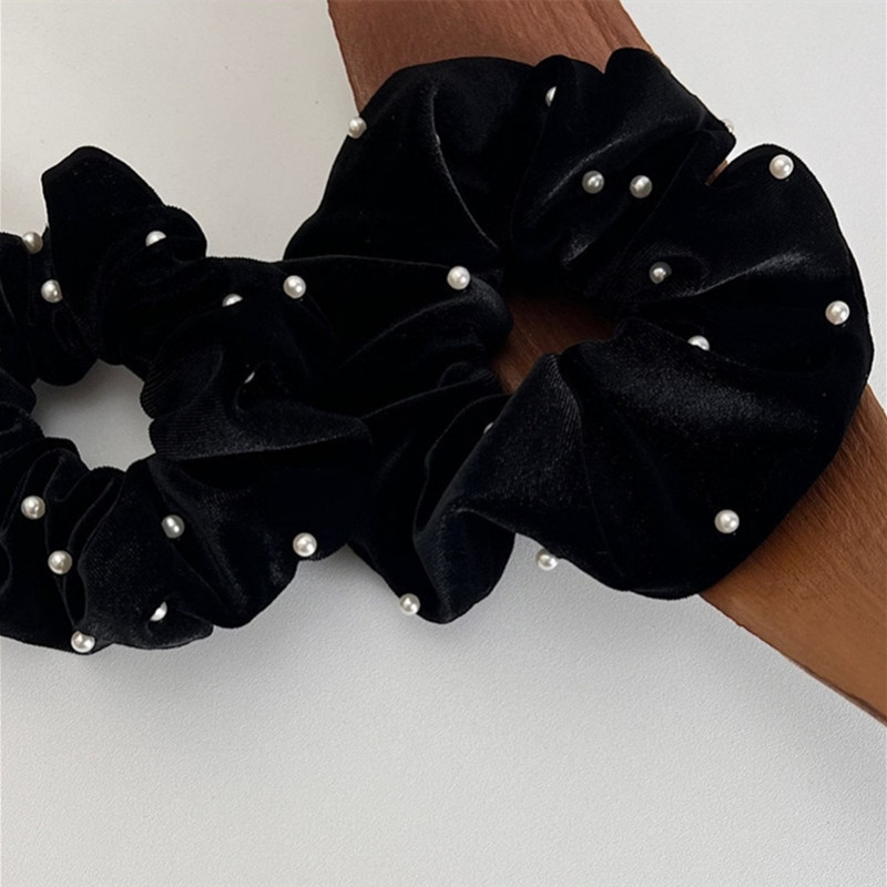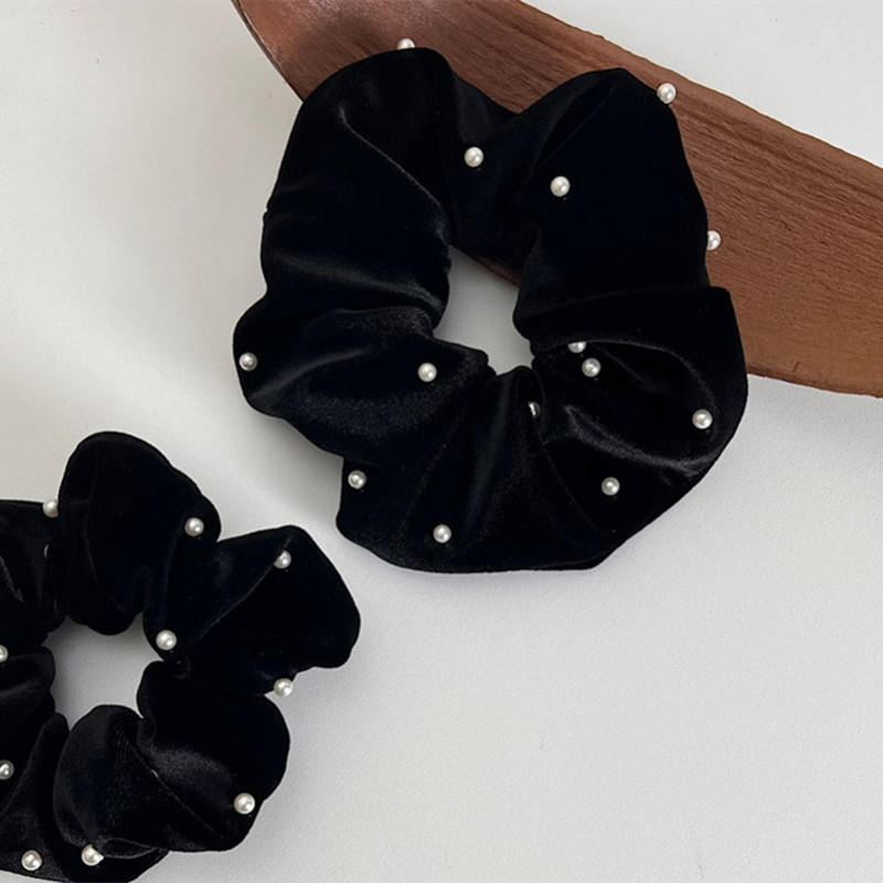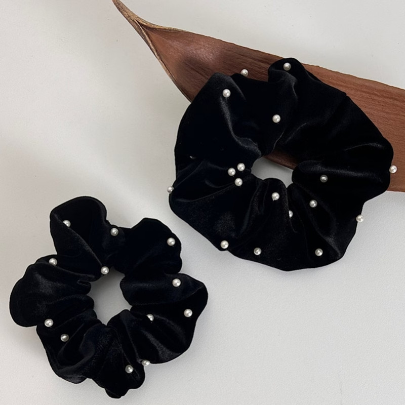 ヘアゴム ベロアシュシュ パール付きベ レディースジュエリー アクセサリー ヘアアクセサリー シュシュ 豊富な品揃え (大)直径約14cm (小)直径約12cm