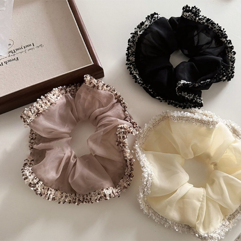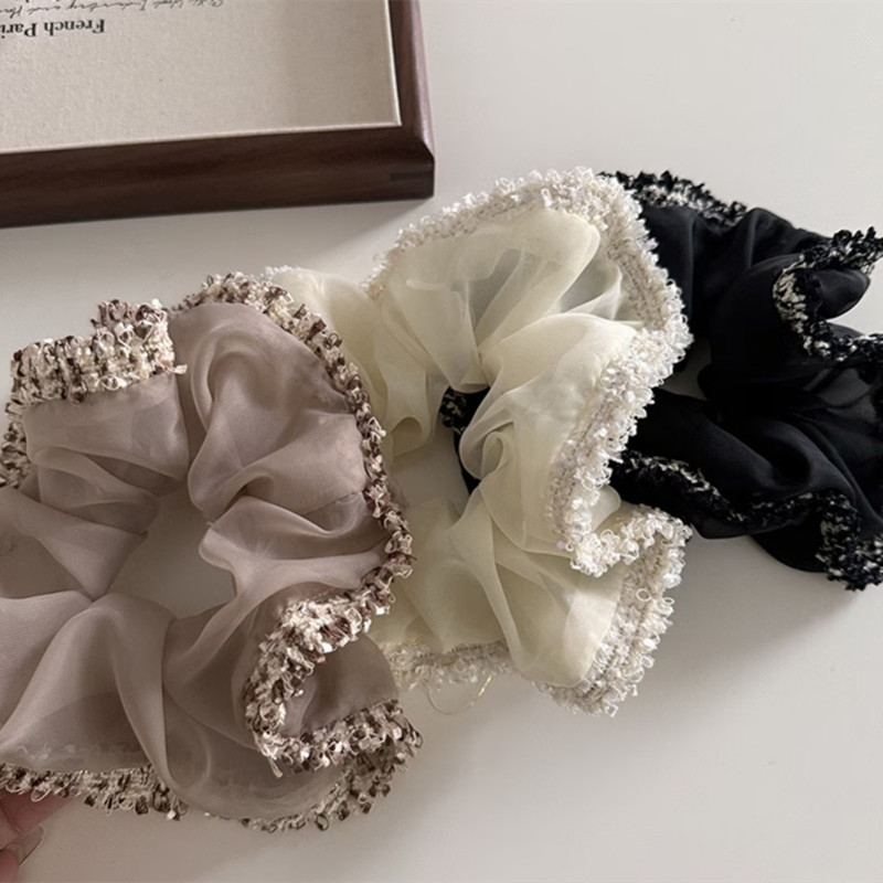 オーガンジーシュシュ ヘアゴム シュシ ジュエリー アクセサリー 豊富 ベージュ ブラック オフホワイト