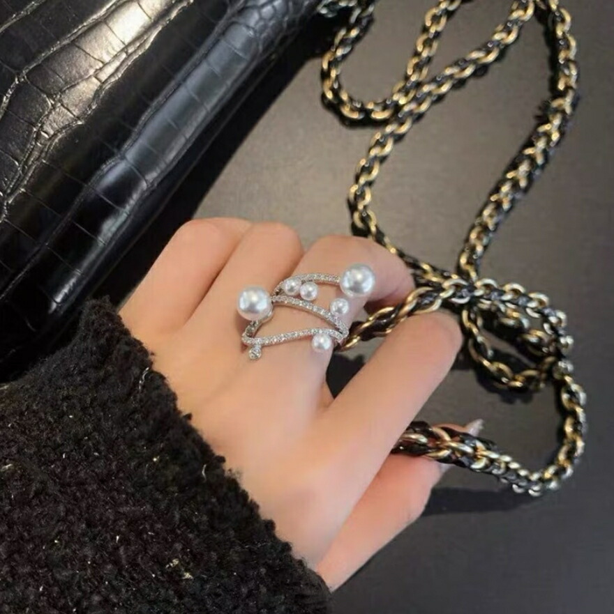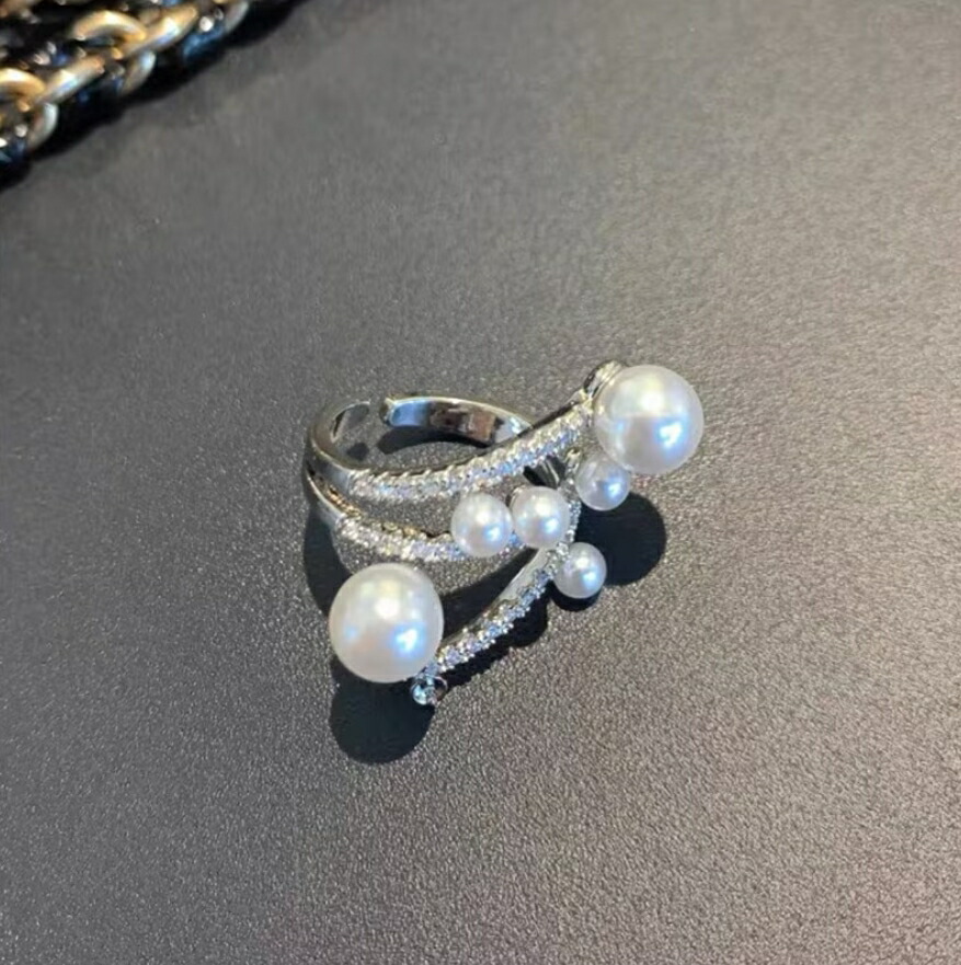 パールデザインリング 指輪 リング おしゃれ シルバー フリーサイズ アクセサリー レディースジュエリー 調節可能ジュエリー