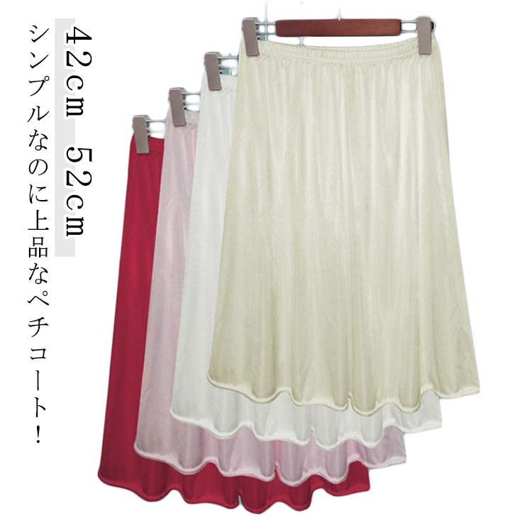 ペチコート ロング 透け防止 ワンピー レディース インナー 下着 ペチコート 特集 ホワイト イエロー ピンク レッド 42cm 52cm