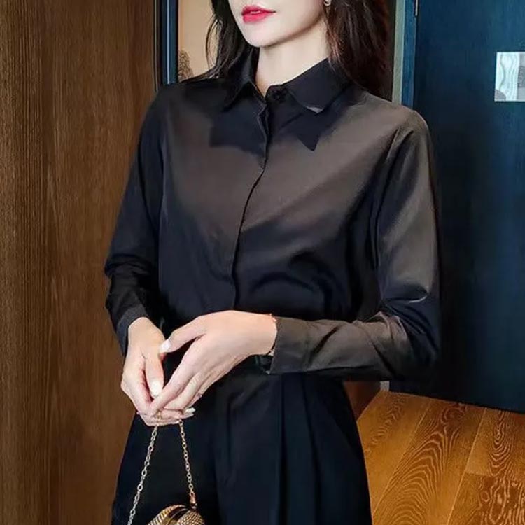 シンプルな無地カラーで、更に女性らしさをアピールボトムスとの組み合わせは自由、通勤コーデにも日常コーデにも似合う一枚。