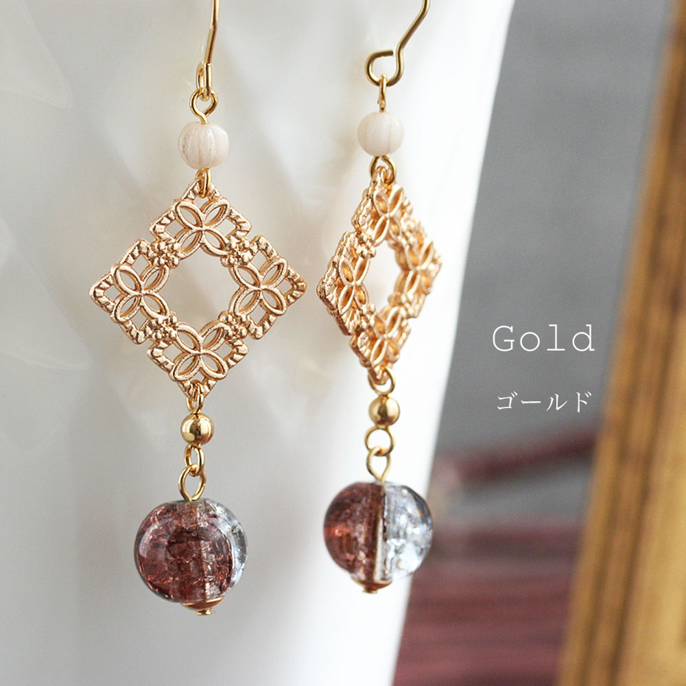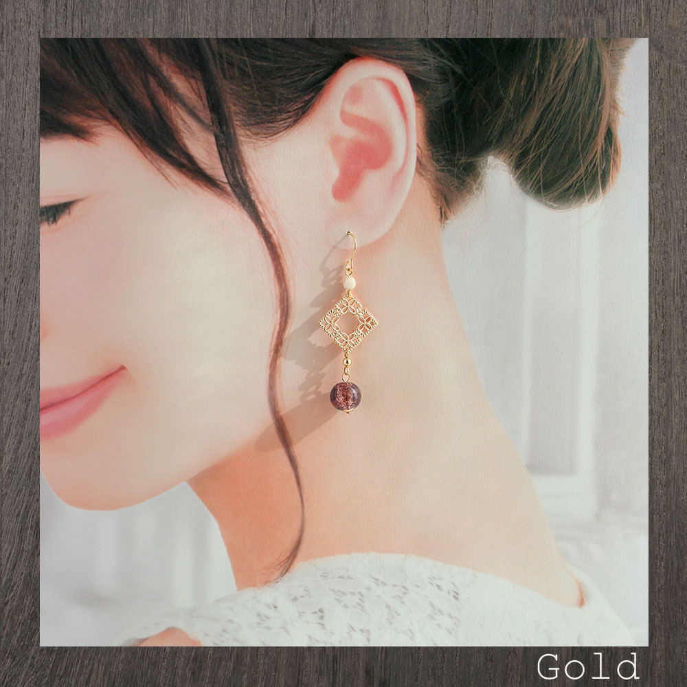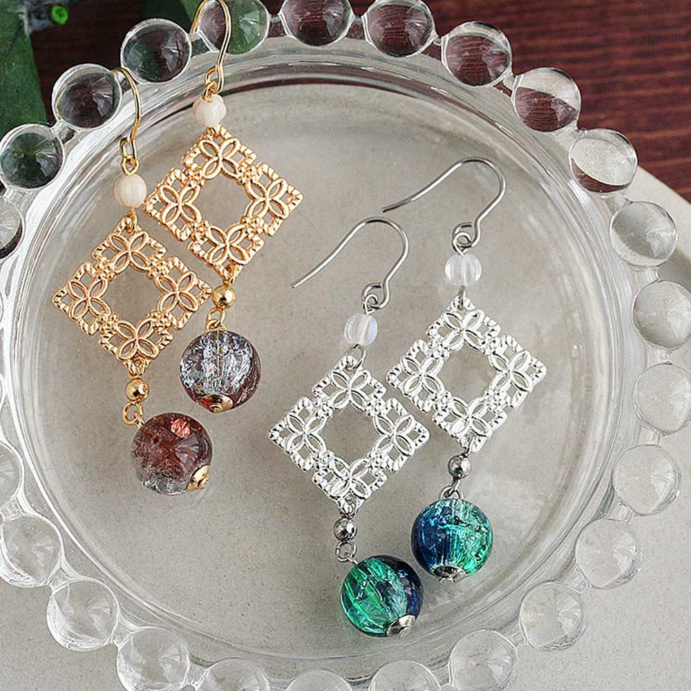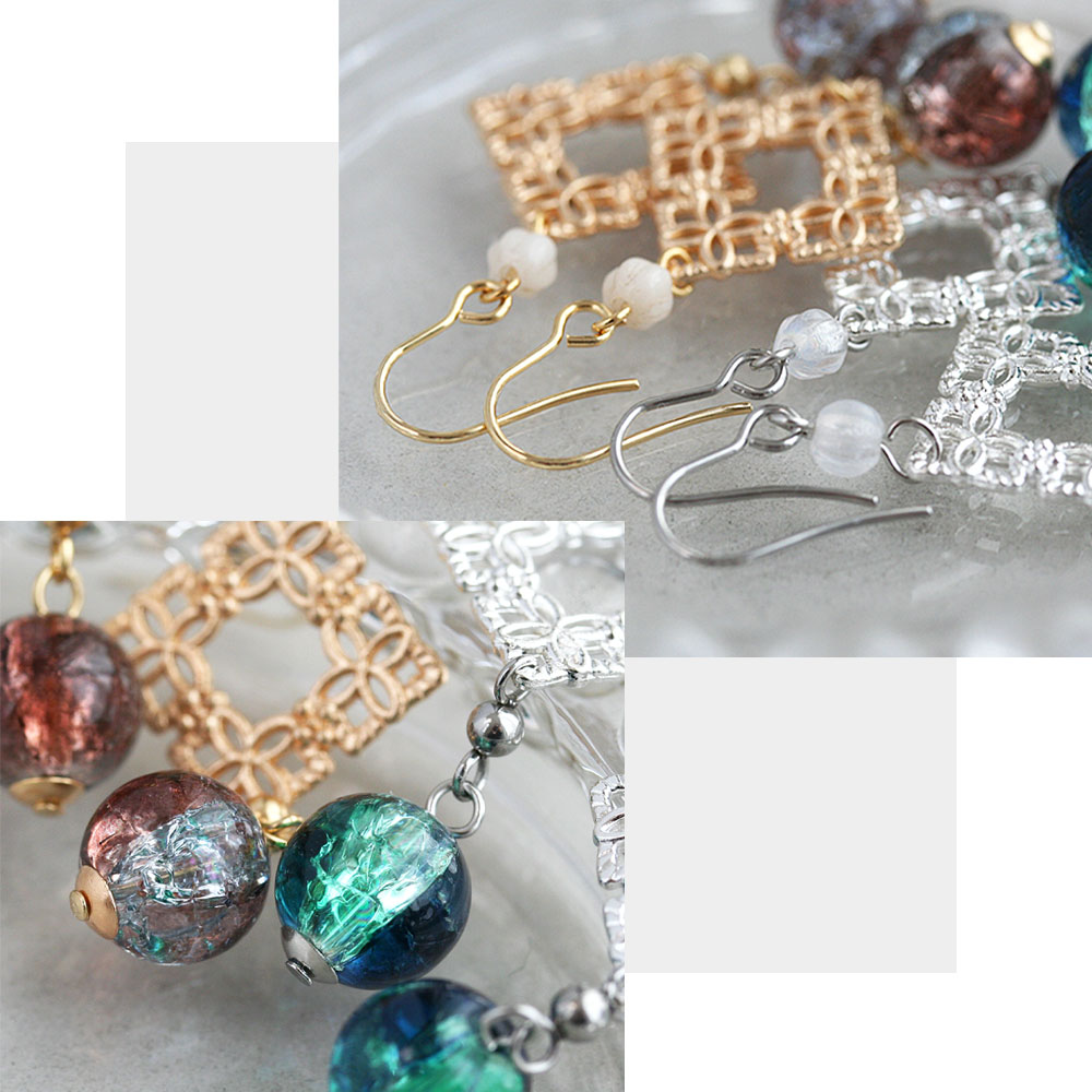 ◆ピアスフック部分以外の素材:合金にメッキ・チェコガラス・ガラス