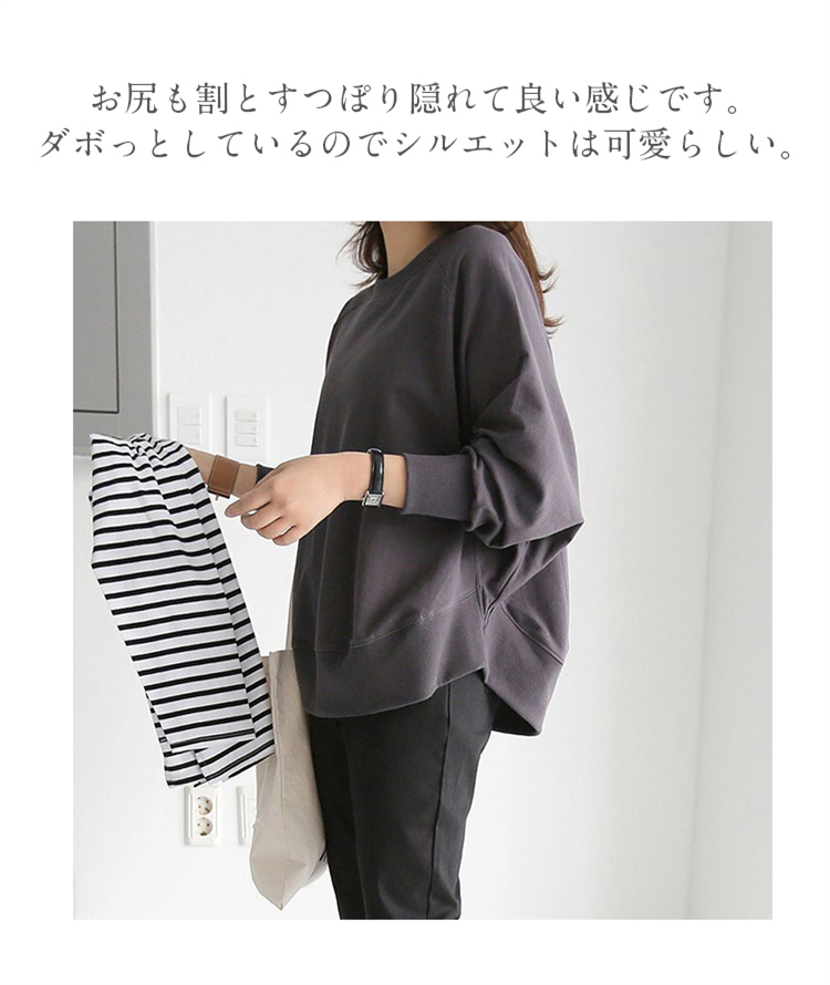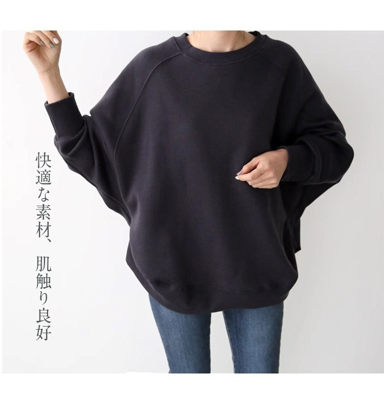ループ裏起毛イレギュラーデザイン!クルーネックプルオーバースウェット バットスリーブでゆったり着心地 女性用スポーツシャ