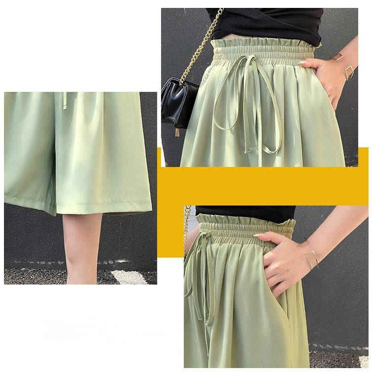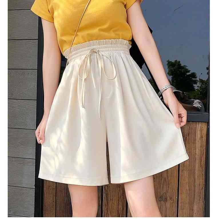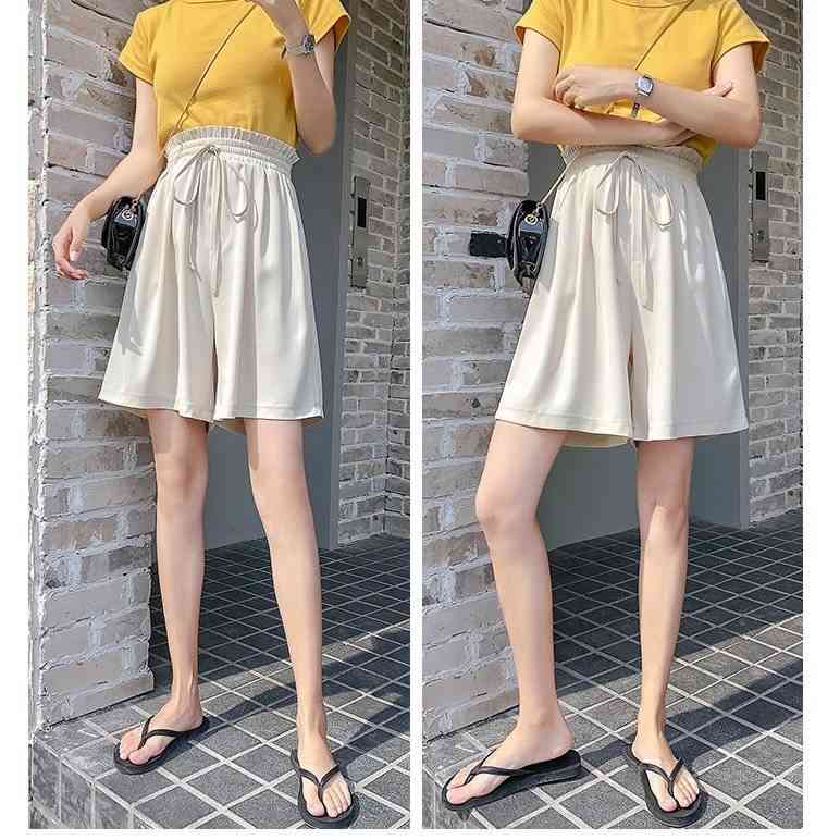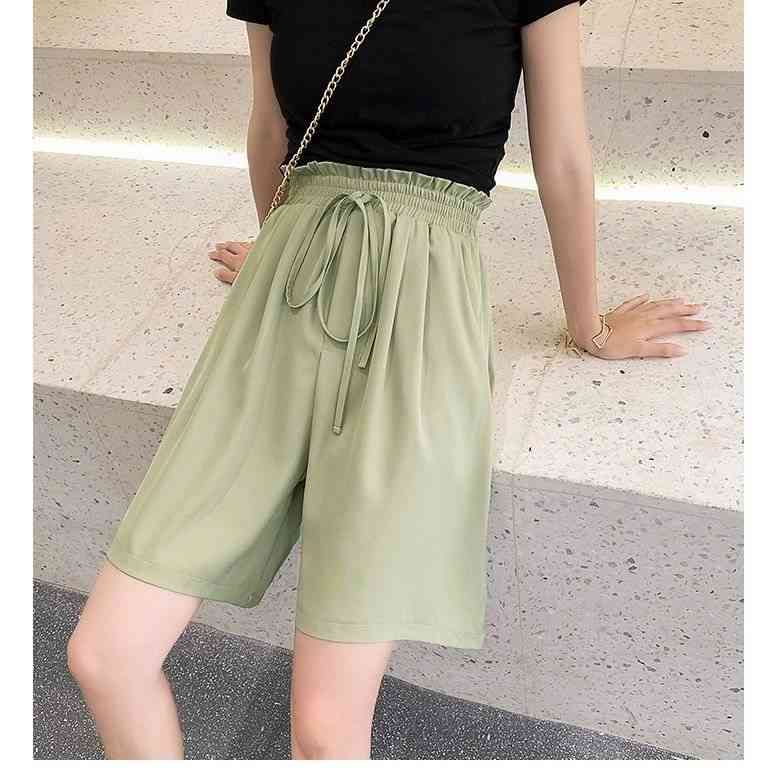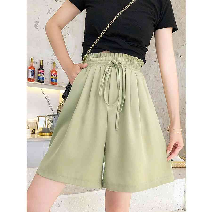 レディース ハイウエスト ショートパンツ 夏用 シフォン素材 ウエストゴム カジュアル/リラックス 無地 サマーボトムス