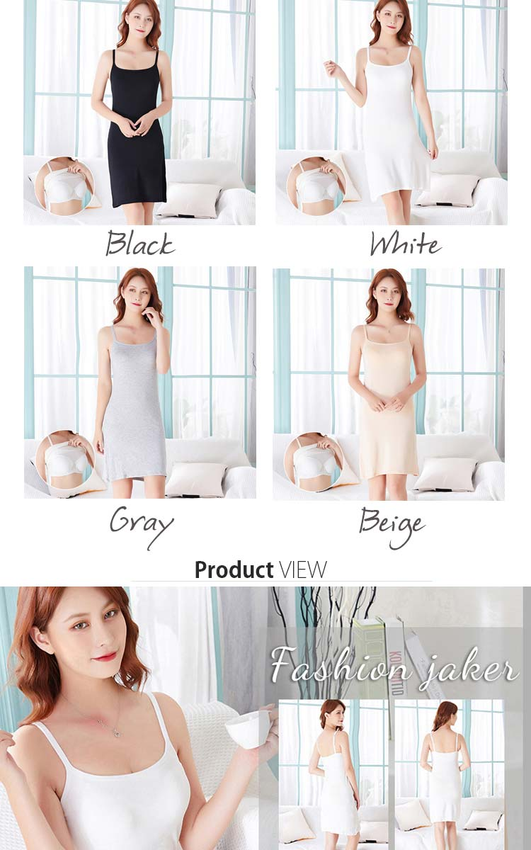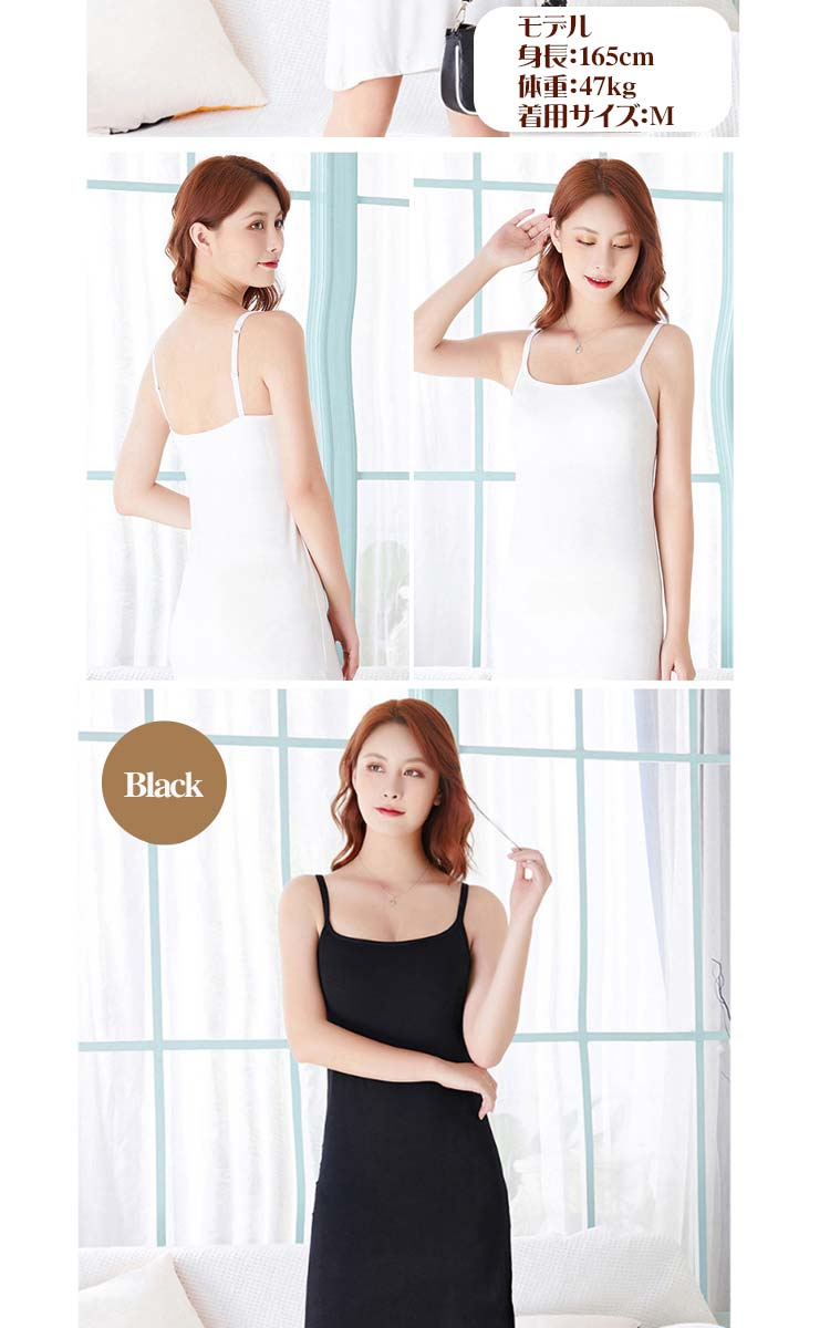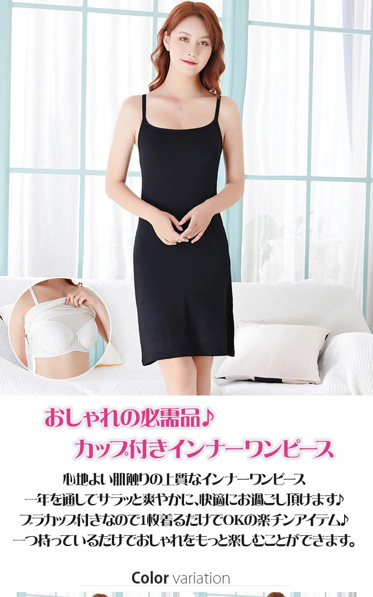 レディース インナードレス ブラカップ付き 透け防止ペチコート キャミワンピ ロング 全4色 ブラック/ホワイト/ベージュ/グレー
