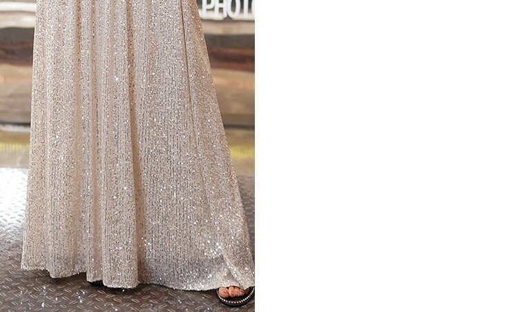 送料無料 イブニングドレス スパンコール キラキラドレス シルバー 発表会ドレス ロングドレス Vネック 着瘦せ パーティードレス 銀色 5分袖 結婚式ドレス 二次会ドレス 大きいサイズ