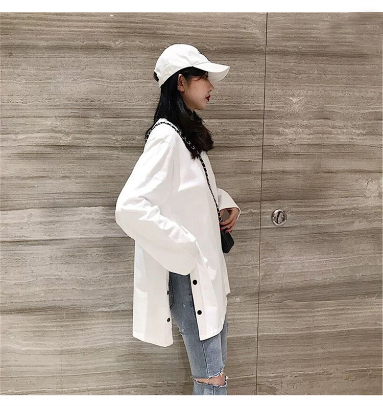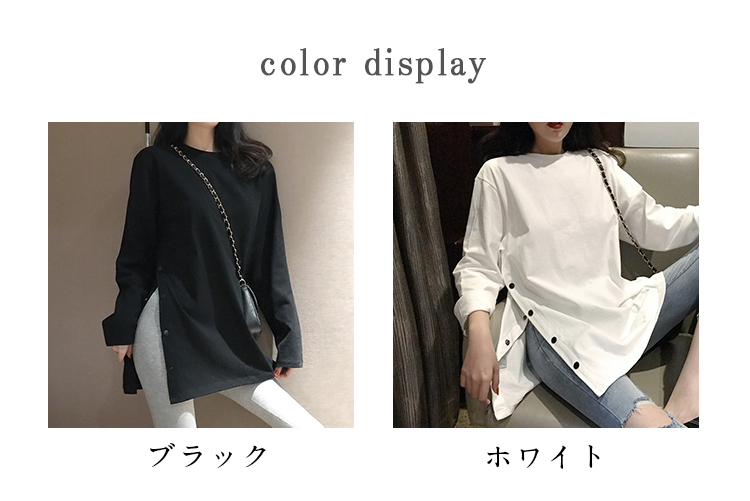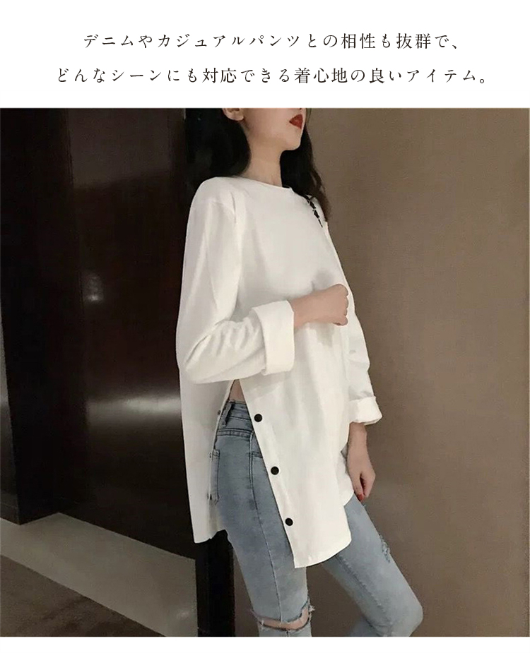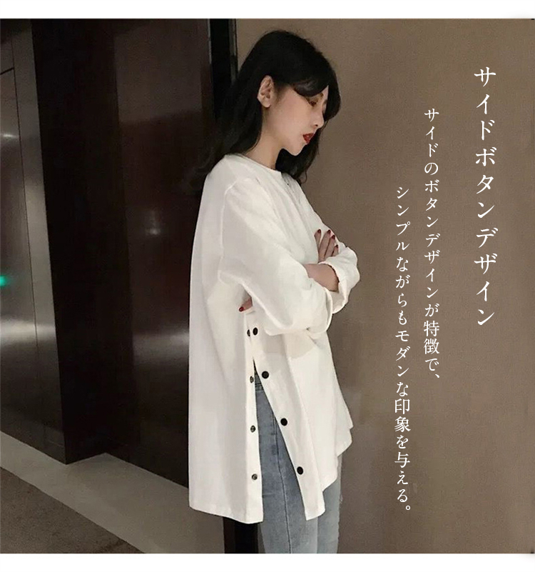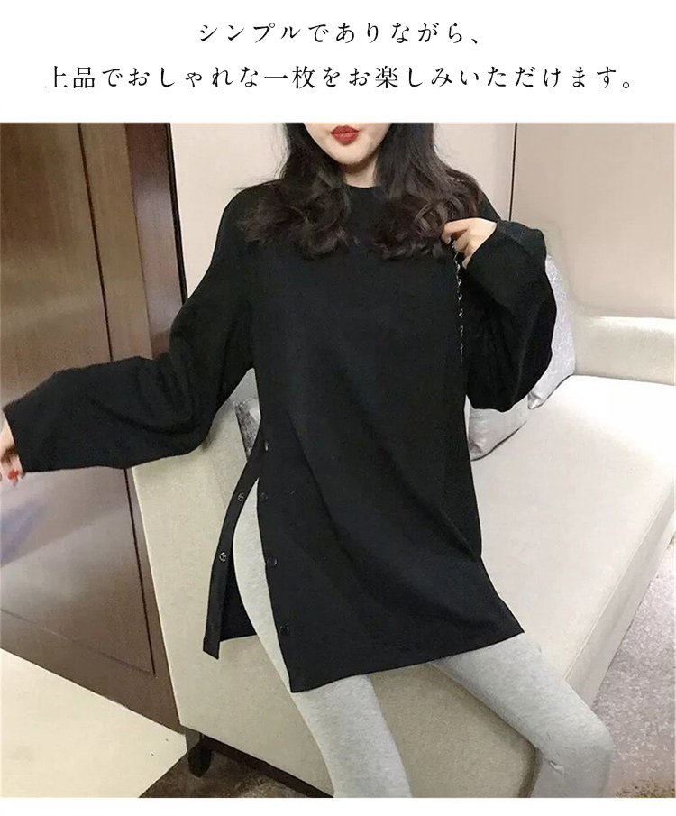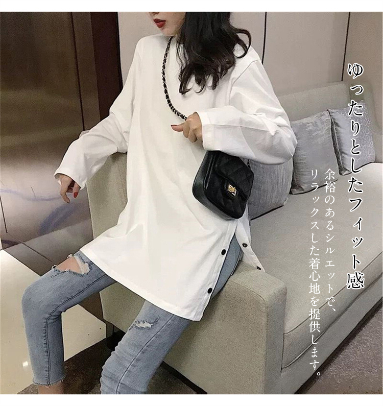 長袖Tシャツ レディース ロング丈 オーバーサイズ 秋 ゆったり スリットデザイン ボトムスイン 韓国風 秋冬 ベーシック 無地 カジュアル トップス