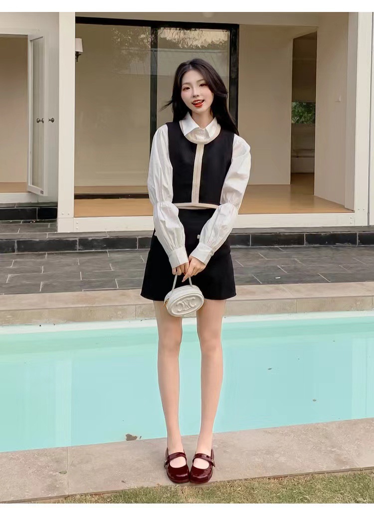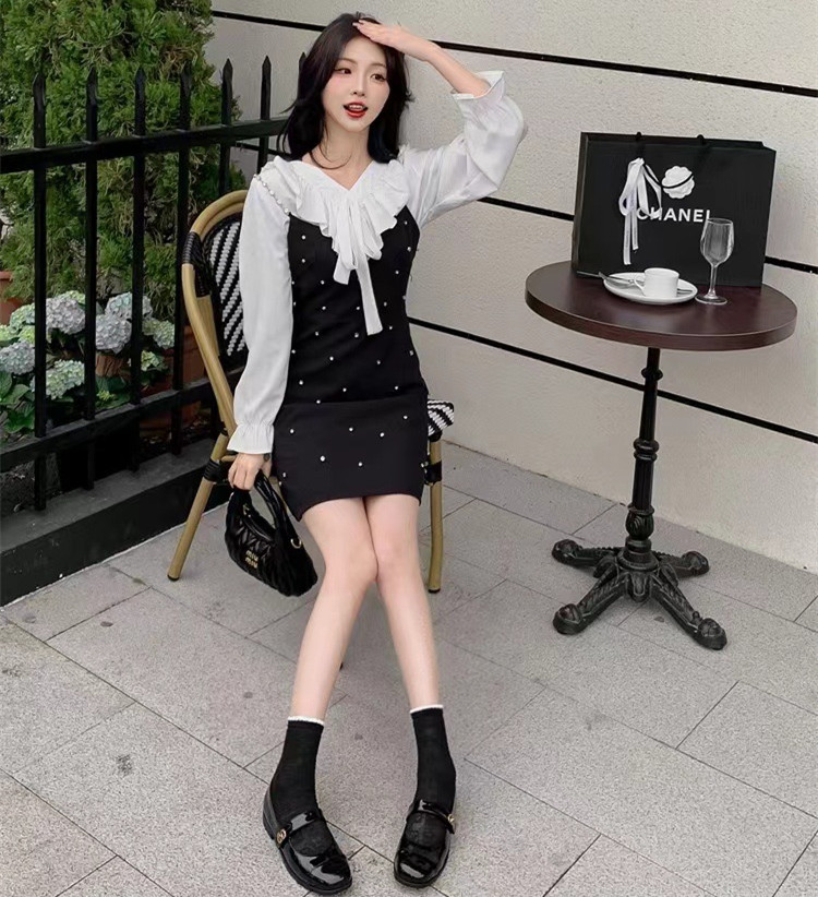 シアースリーブ ドッキングシャツ ボウタイシャツブラウス