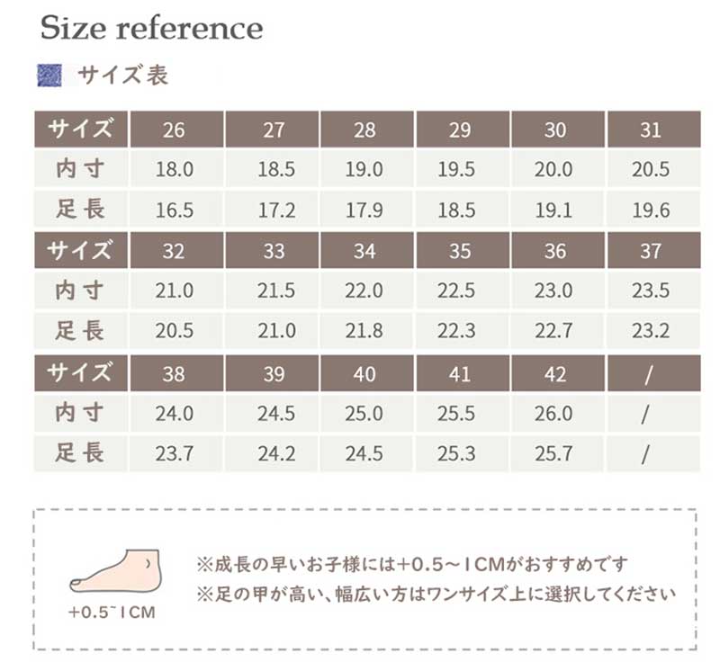 サイズ: [26] 内寸約18.0cm [27] 内寸約18.5cm [28] 内寸約19.0cm [29] 内寸約19.5cm [30] 内寸約20.0cm [31] 内寸約20.5cm [32] 内寸約21.0cm [33] 内寸約21.5cm [34] 内寸約22.0cm [35] 内寸約22.5cm [36] 内寸約23.0cm [37] 内寸約23.5cm [38] 内寸約24.0cm [39] 内寸約24.5cm [40] 内寸約25.0cm [41] 内寸約25.5cm [42] 内寸約26.0cm
