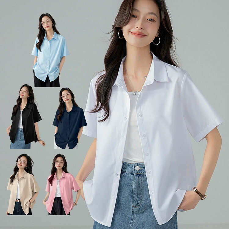 ワイシャツ 白シャツ 半袖シャツ レデ