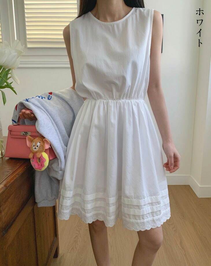 レース ノースリーブ ワンピース ワン