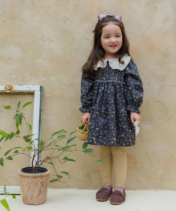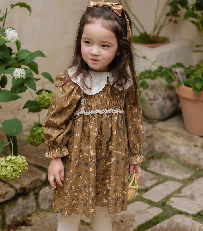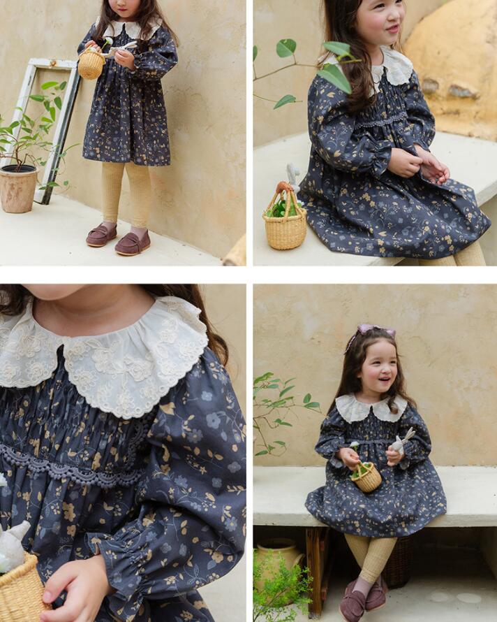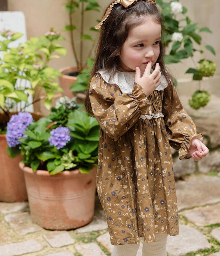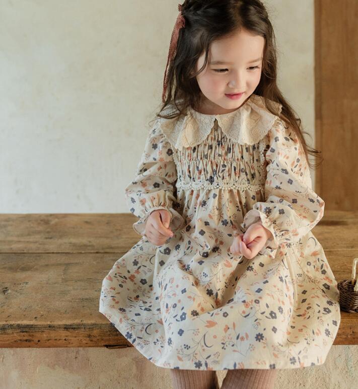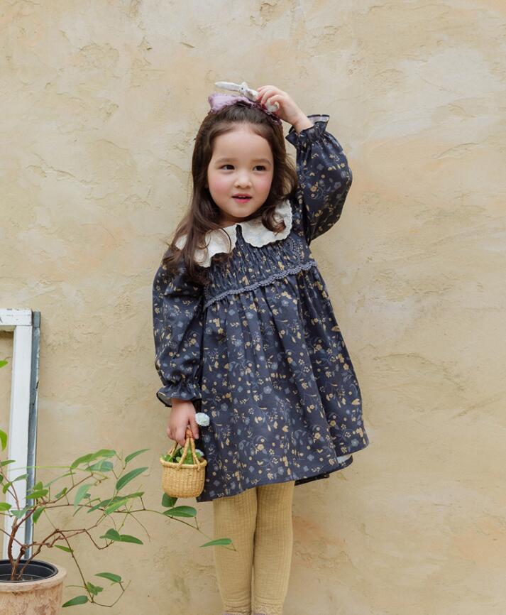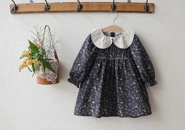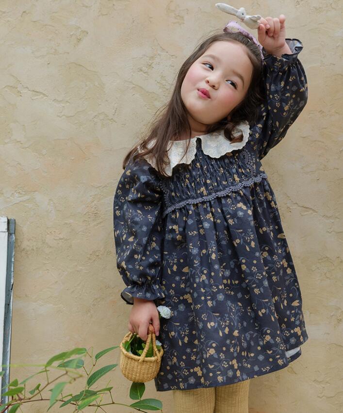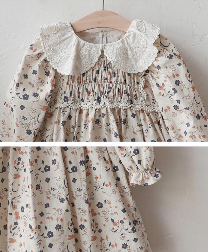 花柄ワンピース 襟付きキッズ ベビーワンピース 長袖 女の子 子供服 こども服 ドレス 秋 冬 春 100cm 110cm120cm130cm140cm150cm通園 通学