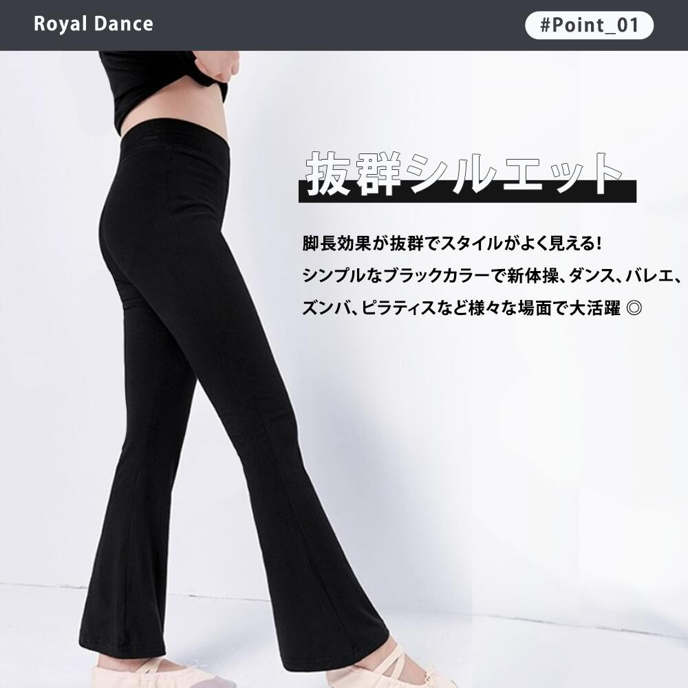 フレアパンツ ジャズダンス レディース パンツ ダンス衣装 パンツ 黒 レッスン 練習着 運動着 ロイヤルダンス Royal Dance