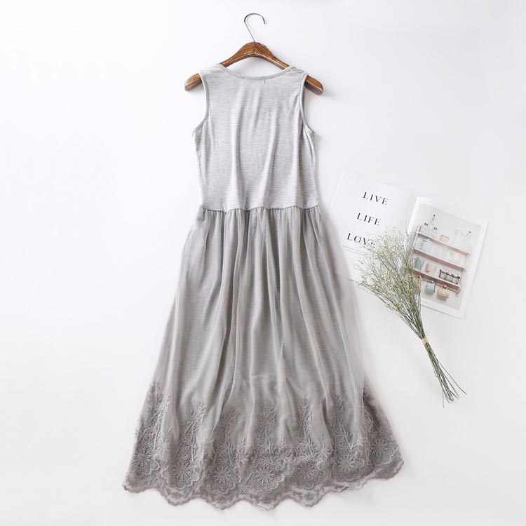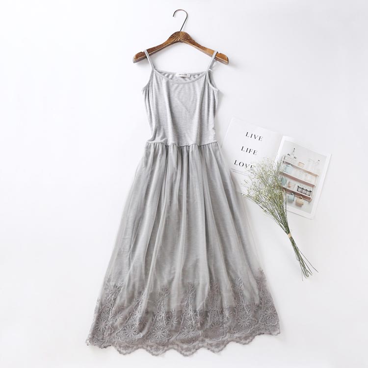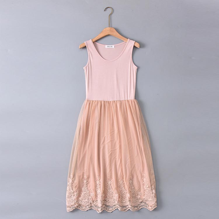 ロング ワンピース チュールワンピース レディース インナーワンピース チュール レース 刺繍 タンクトップワンピース キャミソール ワンピース