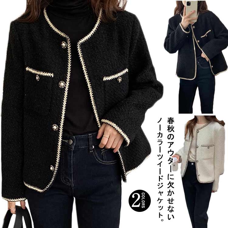 薄手 ジャケット 長袖 ツィードジャケット セレモニー パール 入学式 裏地付き 母 フォーマル アウター 韓国 スーツジャケット レディース 普段使い お呼ばれ コー 卒業式