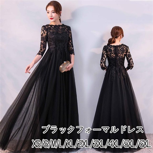 上品 ロングドレス 演奏会 大人 黒 袖付き フォーマル 七分袖 キャバロングドレス イブニングドレス ピアノ 発表会 大きいサイズ パーティードレス 結婚式 お呼ばれ 演奏会用ドレス 二 ワンピース