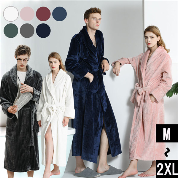 7色 ペアパジャマ ガウン メンズ レディース 冬 モコモコ カップル フランネル ローブ ルームウェア ロング丈 もこもこ 長袖 ナイトガウン 着る毛布 裏起毛 部屋着 お風呂上り結婚祝い 寝巻き
