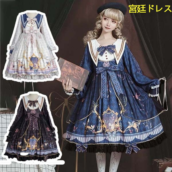 ロリータ ワンピース ゴスロリ ライン 宮廷ドレス リボン レディース コスチューム 衣装 かわいい フリル 仮装 パーティー