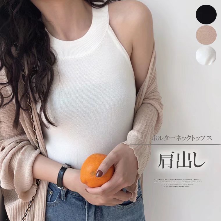 シアーアイテムとの相性抜群 レディース ノースリーブニット ホルターネック アメリカンスリーブ タイト トップス サマー ニット フェミニン セクシー