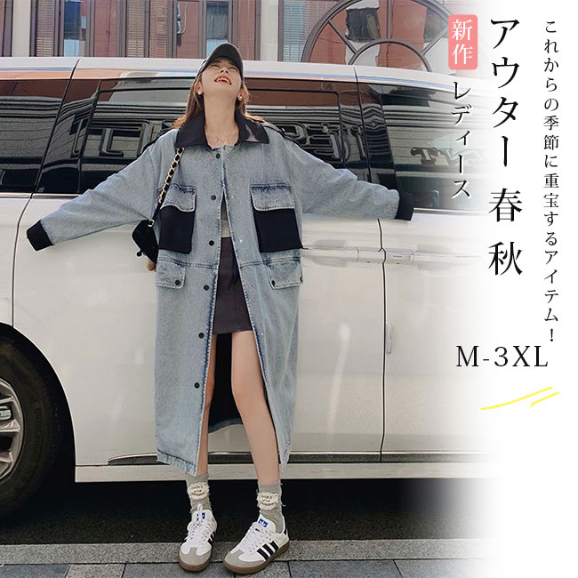 春新作 デニム トレンチコート レディース 春コート カジュアル アウター ゆったり スプリングコート オーバーサイズ デニムジャケット 春服 秋服 デニムアウター