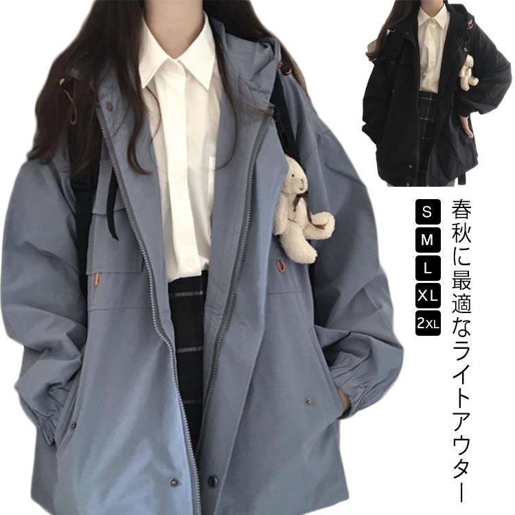 春 ライトアウター レディース アウター マウンテンパーカー 大きいサイズ 春ジャケット ジャケット ゆったり 体型カバー 羽織 オーバーサイズ 無地 カジュアル 着瘦せ フ おしゃれ