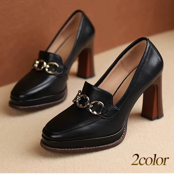 安定感 プラットフォーム チャンキーヒール 太ヒール キレイ目 安定感抜群の太ヒールローファー靴 レディース靴 ローファー